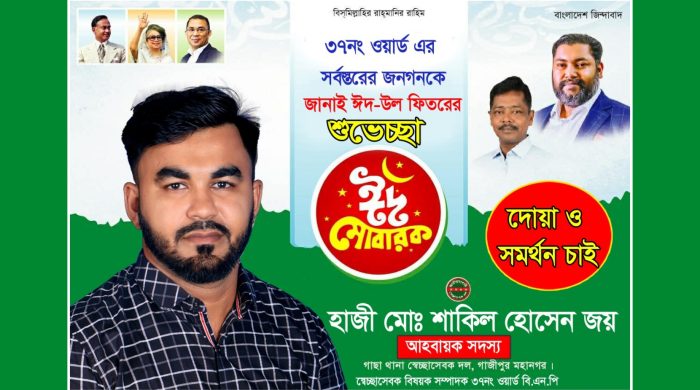 নিউজ ডেস্ক : পবিত্র ঈদ-উল ফিতর উপলক্ষে দেশ ও প্রবাসে অবস্থানরত সকল শুভানুধ্যায়ী, শ্রমিক-কর্মচারী, ব্যবসায়ীসহ সর্বস্তরের জনগণকে আন্তরিক শুভেচ্ছা ও ঈদ মোবারক জানিয়েছেন গাছা থানা আরো পড়ুন
