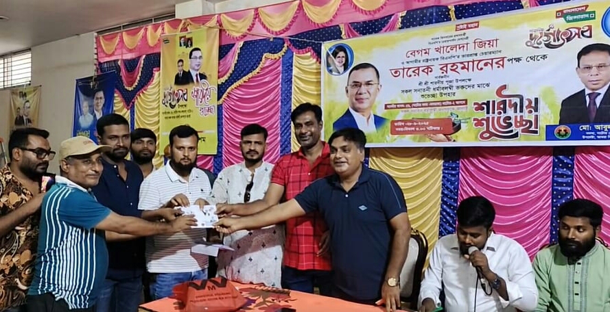 নাটোরে ১৩৮ পূজা মণ্ডপে খালেদা জিয়া ও তারেক রহমানের পক্ষ থেকে শিল্পপতি আবুল কাশেমের অনুদান বিতরণ