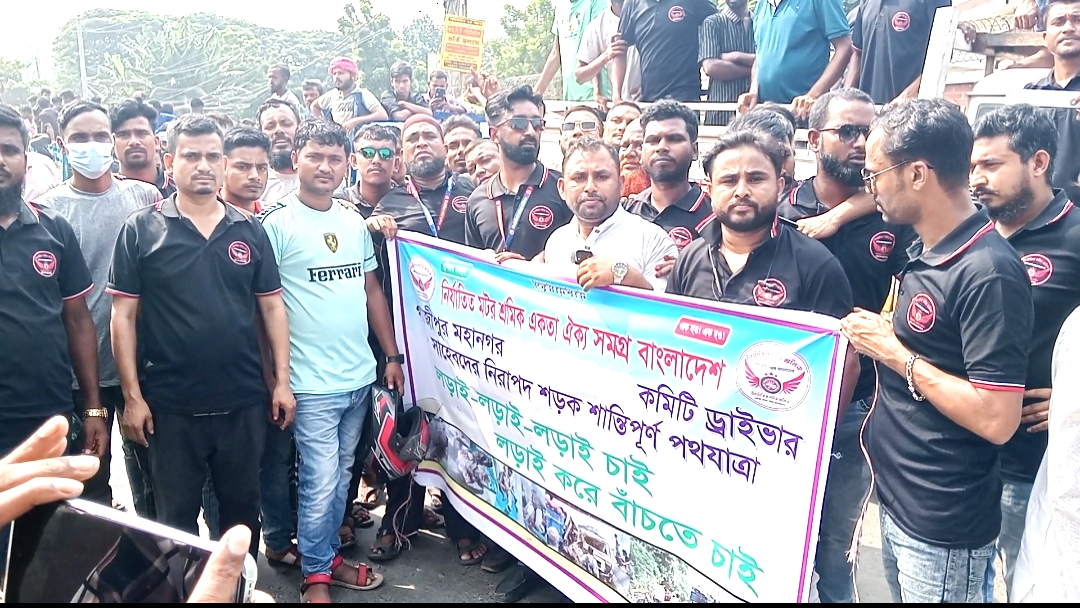 গাজীপুরে নিরাপদ সড়ক ও শান্তিপূর্ণ পথযাত্রা: ছিনতাইকারীদের বিরুদ্ধে রুখে দাঁড়ানোর ঘোষণা নির্যাতিত মোটর শ্রমিক ঐক্যের