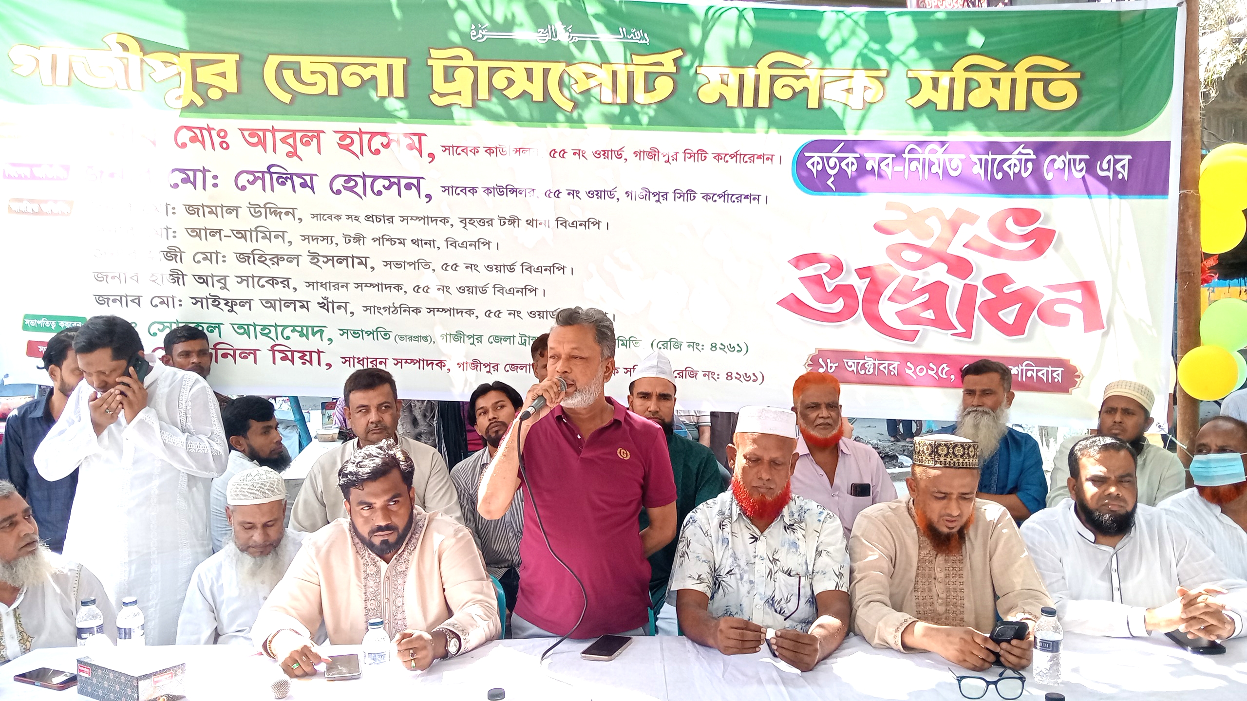 নিজস্ব প্রতিবেদক: গাজীপুর জেলা ট্রান্সপোর্ট মালিক সমিতি কতৃক নব নির্মিত মার্কেট সেডের শুভ উদ্বোধন অনুষ্ঠিত হয়েছে। শনিবার (১৮ অক্টোবর) সকাল ১১টায় গাজীপুরের আব্দুল মতিন সড়কের মিলগেট এলাকায় এক অনাড়ম্বর অনুষ্ঠানের মধ্য দিয়ে সেড উদ্বোধন করা হয়। অনুষ্ঠানে সভাপতিত্ব করেন গাজীপুর জেলা ট্রান্সপোর্ট মালিক সমিতির ভারপ্রাপ্ত সভাপতি মোহাম্মদ সোহেল আহম্মেদ, এবং সঞ্চালনা করেন সমিতির সাধারণ সম্পাদক নিল মিয়া। প্রধান অতিথি হিসেবে উপস্থিত ছিলেন গাজীপুর সিটি করপোরেশনের ৫৫ নং ওয়ার্ড কাউন্সিলর আবুল হাসান, যিনি তার বক্তব্যে বলেন গাজীপুর জেলা ট্রান্সপোর্ট মালিক সমিতি সবসময় শ্রমিক ও মালিকদের স্বার্থ রক্ষায় নিরলসভাবে কাজ করছে। নবনির্মিত এই মার্কেট সেড শুধু একটি স্থাপনা নয়, এটি মালিক-শ্রমিক ঐক্যের প্রতীক এবং পরিবহন খাতে স্বচ্ছতা ও শৃঙ্খলা প্রতিষ্ঠার বাস্তব প্রয়াস। তিনি আরও বলেন, এই সেডের মাধ্যমে পরিবহন ব্যবসায়ীরা আরও সংগঠিতভাবে তাদের কার্যক্রম পরিচালনা করতে পারবেন। সেবার মান ও পেশাদারিত্ব বৃদ্ধিতে এটি বড় ভূমিকা রাখবে। বিশেষ অতিথি হিসেবে উপস্থিত ছিলেন ৫৫ নং ওয়ার্ডের সাবেক কাউন্সিলর সেলিম হোসেন। এছাড়াও অনুষ্ঠানে আমন্ত্রিত অতিথি হিসেবে উপস্থিত ছিলেন বৃহত্তর টঙ্গী থানা বিএনপির সাবেক সহ-প্রচার সম্পাদক জামাল উদ্দিন, পশ্চিম থানা বিএনপির সদস্য আলা-আমিন, ৫৫ নং ওয়ার্ড বিএনপির সভাপতি হাজী মোঃ জহিরুর ইসলাম, সাধারণ সম্পাদক হাজী আবু সাকের, ও সাংগঠনিক সম্পাদক সাইফুল আলম সংগঠনের সাংগঠনিক সম্পাদক ইউসুফ হুসাইন সহ সংগঠনের নেতৃবৃন্দ উপস্থিত ছিলেন। উদ্বোধনী অনুষ্ঠানে বক্তারা বলেন, গাজীপুরের ক্রমবর্ধমান পরিবহন ব্যবস্থায় এই মার্কেট সেড মালিক-শ্রমিক ও যাত্রীদের মধ্যে সমন্বয় তৈরি করবে এবং স্থানীয় অর্থনীতিতে ইতিবাচক প্রভাব ফেলবে। অনুষ্ঠানের শেষে প্রধান অতিথি ও অন্যান্য অতিথিবৃন্দ গাজীপুর জেলা মালিক সমিতির নির্বাচিত তৌহিদুজ্জামান শিমুল ও জাহিদুল ইসলাম জাহিদ সভাপতির পদ নিয়ে সৃষ্ট জটিলতা নিরসন করেন। সবার সিদ্ধান্ত ক্রমে হাইকোর্টের রিট পিটিশন নিজ দায়িত্বে তুলে নেওয়ার পরামর্শ দেন এবং জাহিদুল ইসলাম জাহিদকে সভাপতির দায়িত্ব ও তৌহিদুজ্জামান শিমুলকে উপদেষ্টা হিসেবে দায়িত্ব অর্পণ করা হয়।