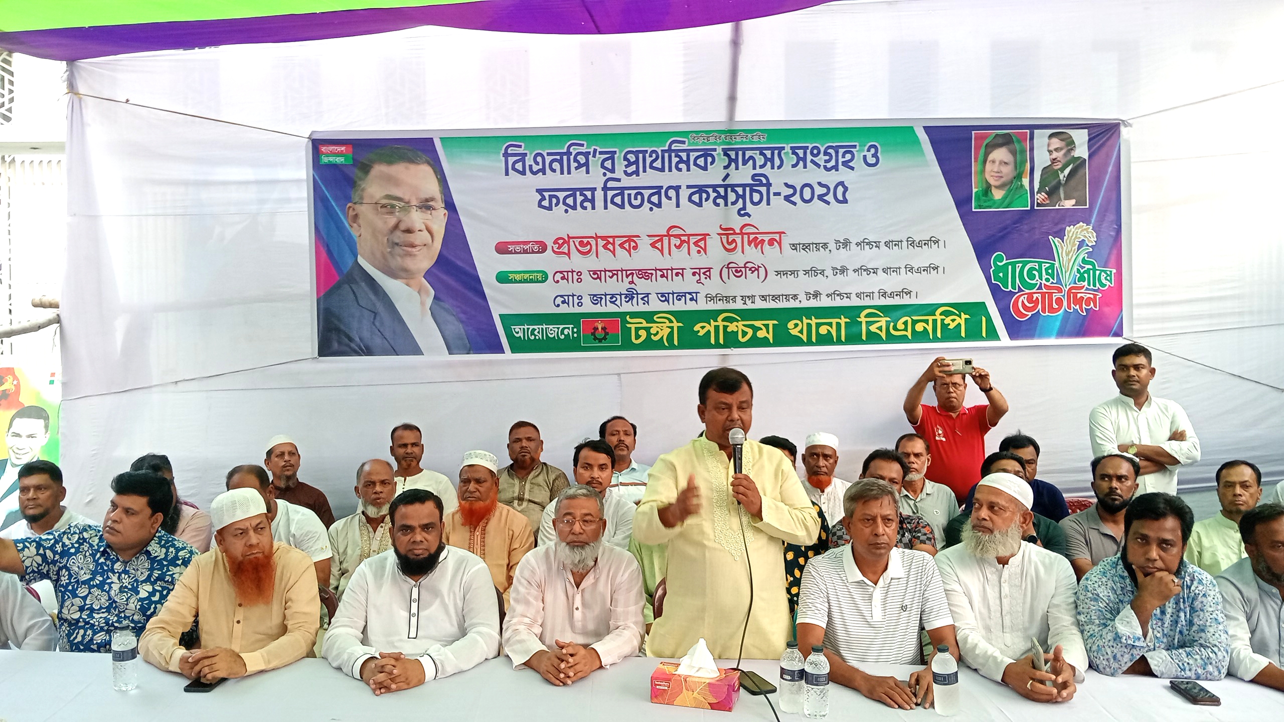 নিজস্ব প্রতিবেদক: গাজীপুর মহানগরের টঙ্গীতে উৎসবমুখর পরিবেশে অনুষ্ঠিত হয়েছে বাংলাদেশ জাতীয়তাবাদী দল (বিএনপি)-এর প্রাথমিক সদস্য সংগ্রহ ও ফর্ম বিতরণ কর্মসূচি। বুধবার (২২ অক্টোবর) বিকেলে টঙ্গী পশ্চিম থানা বিএনপি’র আয়োজনে আউচপাড়া এলাকার প্রভাষক বশির উদ্দিনের ব্যাপারী বাড়ির প্রাঙ্গণে এ কর্মসূচি অনুষ্ঠিত হয়। অনুষ্ঠানে সভাপতিত্ব করেন টঙ্গী পশ্চিম থানা বিএনপি’র আহ্বায়ক ও গাজীপুর-৬ আসনের সম্ভাব্য সংসদ সদস্য পদপ্রার্থী প্রভাষক বশির উদ্দিন এসময় তিনি বলেন, বিএনপি একটি গণমানুষের দল। আমরা নতুন সদস্য নিচ্ছি, তবে আওয়ামী লীগের রাজনীতির সঙ্গে জড়িত কেউ যেন অনুপ্রবেশ করতে না পারে সে বিষয়ে সবাইকে সতর্ক থাকতে হবে। দলের নীতিমালা ভঙ্গ করলে তার বিরুদ্ধে সাংগঠনিক ব্যবস্থা নেওয়া হবে। বিএনপি ত্যাগী ও পরীক্ষিত নেতাকর্মীদের হাতেই শক্তিশালী হবে। তিনি আরও বলেন, জামায়াত একদিকে পিআর পদ্ধতির কথা বলে আবার অন্যদিকে নির্বাচনী প্রচারণা চালাচ্ছে। এটা বিভ্রান্তিকর রাজনীতি, যা জনগণ কখনও গ্রহণ করবে না। সদস্য সচিব আসাদুজ্জামান নূর (ভিপি নূর)-এর সঞ্চালনায় অনুষ্ঠানে আরো উপস্থিত ছিলেন টঙ্গী পশ্চিম থানা বিএনপি’র সিনিয়র যুগ্ম আহ্বায়ক ও ৫৩ নং ওয়ার্ডের সাবেক কাউন্সিলর জাহাঙ্গীর আলম,গাজীপুর মহানগর মহিলা দলের সাধারণ সম্পাদক খাদিজা আক্তার বিনা, শ্রম সম্পাদক ফেরদৌসী বেগম, টঙ্গী পশ্চিম থানা ছাত্রদলের সাবেক আহ্বায়ক রেদোয়ানুর রহমান প্রত্যয় বেপারী, টঙ্গী পশ্চিম থানা যুবদলের যুগ্ন আহবায়ক মাহাবুব মেয়াজি, ৫২ নং ওয়ার্ড বিএনপির সাধারণ সম্পাদক সামসুল হক, ৫৫ নং ওয়ার্ড বিএনপি’র সভাপতি হাজী জহিরুল ইসলাম, ৫৪ নং ওয়ার্ড বিএনপি’র সভাপতি আজিজুল হক রাজু মাস্টার, সাধারণ সম্পাদক নিশাত মাহমুদ জালাল, ১ নং যুগ্ন সম্পাদক সম্পাদক শামীম হোসেন, ৫৩ নং ওয়ার্ড বিএনপি’র সভাপতি আনিসুর রহমান, সাধারণ সম্পাদক সাদেক আলী, এবং ৫৪ নং ওয়ার্ডের কাউন্সিলর পদপ্রার্থী শামীম বেপারী, ৫১ নং ওয়ার্ড বিএনপির সভাপতি আব্দুল সাত্তার মিয়া, সাধারণ সম্পাদক ইকতিয়ার হোসেন, ৫২ নং ওয়ার্ডে গুঠিয়া ইউনিটের সভাপতি আনোয়ার হোসেন প্রমুখ। সভায় বক্তারা বলেন, দেশের মানুষের ভোটাধিকার পুনরুদ্ধারে বিএনপি’র প্রতিটি নেতাকর্মীকে ঐক্যবদ্ধ থাকতে হবে। আন্দোলন ও নির্বাচন-দুই ক্ষেত্রেই সাহসী ভূমিকা নিতে হবে। অনুষ্ঠান শেষে বিএনপি’র প্রাথমিক সদস্য সংগ্রহ ফর্ম নেতাকর্মীদের মধ্যে বিতরণ করা হয় এবং সমাপ্তি ঘোষণা করা হয়।