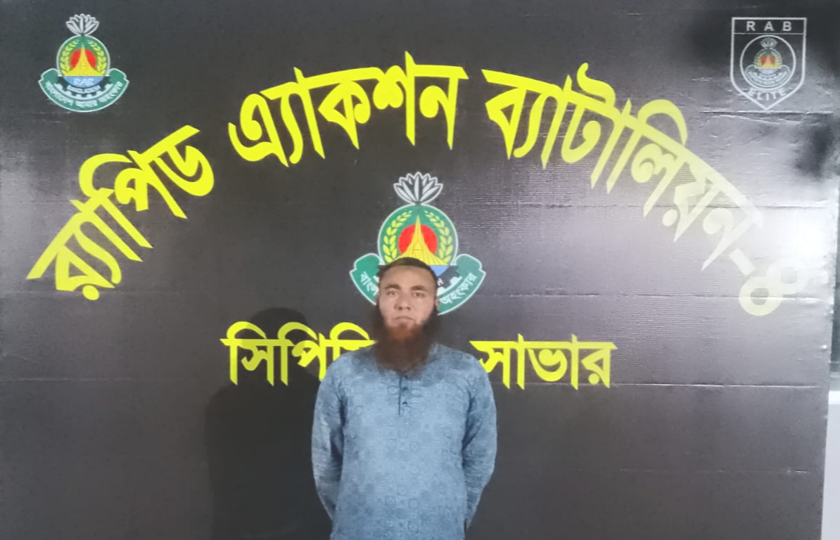 র্যাব-১ ও র্যাব-৪ এর যৌথ অভিযানে ঢাকা জেলার আশুলিয়া এলাকা থেকে দীর্ঘদিনের পলাতক আসামি আটক
