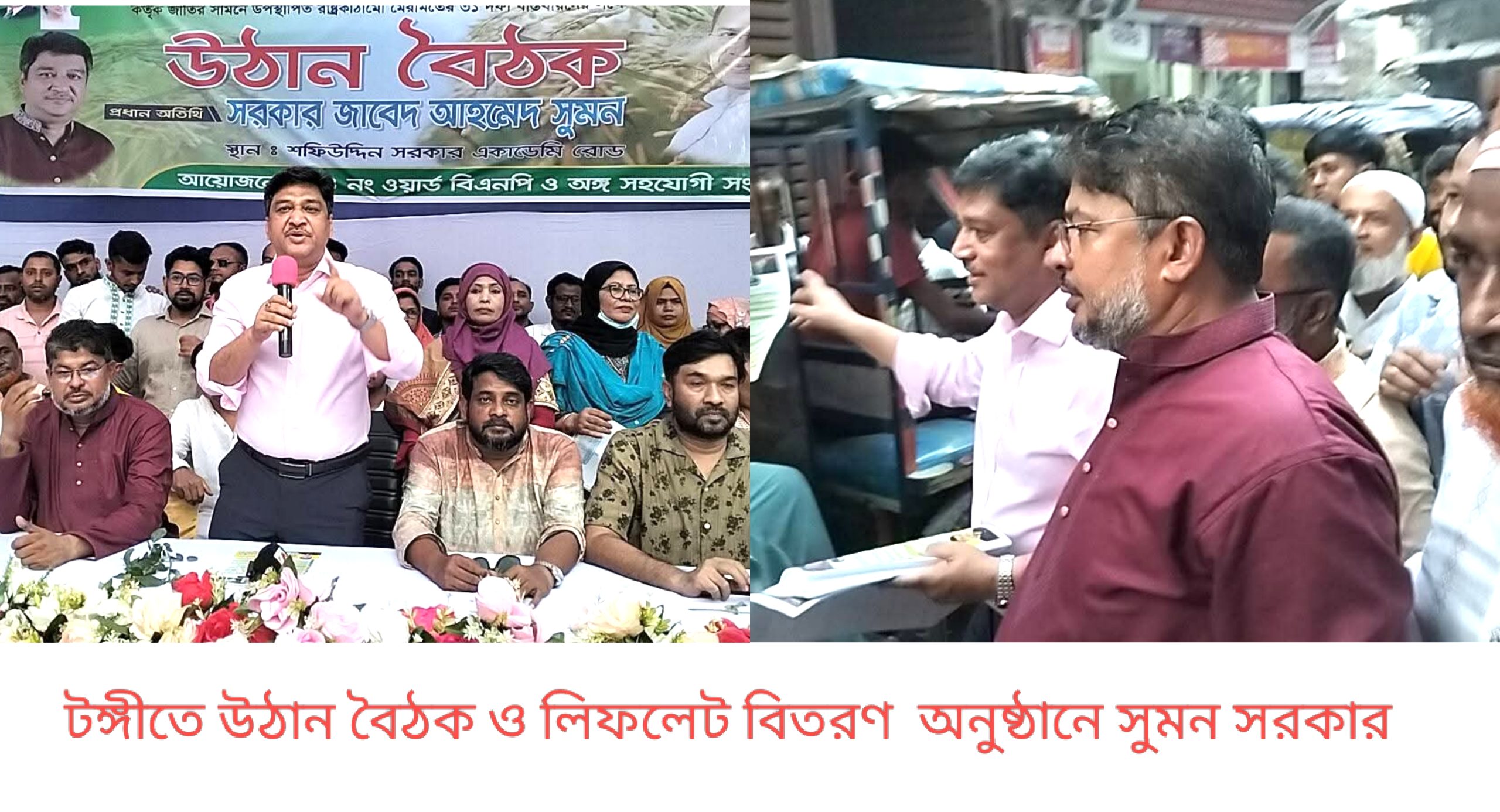 নিজস্ব প্রতিবেদক: গাজীপুরের টঙ্গী পশ্চিম থানা বিএনপি ও সহযোগী সংগঠনের উদ্যোগে নবগঠিত গাজীপুর-৬ (টঙ্গী পূর্ব, টঙ্গী পশ্চিম, পুবাইল ও গাছা) আসনে বিএনপির মনোনয়ন প্রত্যাশী সরকার জাবেদ আহম্মেদ সুমনের প্রতি সমর্থন জানিয়ে উঠান বৈঠক, জনসংযোগ ও লিফলেট বিতরণ কর্মসূচি অনুষ্ঠিত হয়েছে। মঙ্গলবার (২৮ অক্টোবর) বিকেলে গাজীপুর সিটি করপোরেশনের ৫৪ নং ওয়ার্ডের সফি উদ্দিন সরকার একাডেমি এন্ড কলেজ রোডের আল আমিন বেকারি সংলগ্ন মাঠে এ মতবিনিময় সভা অনুষ্ঠিত হয়। সভায় সভাপতিত্ব করেন ৫৪ নং ওয়ার্ড বিএনপির সাধারণ সম্পাদক নিশাত মাহমুদ জালাল। প্রধান অতিথি হিসেবে উপস্থিত ছিলেন টঙ্গী পূর্ব থানা বিএনপি'র সভাপতি গাজীপুর-৬ আসনের বিএনপি মনোনয়ন প্রত্যাশী সরকার জাবেদ আহম্মেদ সুমন। প্রধান অতিথির বক্তব্যে তিনি বলেন গাজীপুর-৬ আসনে জনগণের অধিকার প্রতিষ্ঠা এবং গণতন্ত্র পুনরুদ্ধারে বিএনপি নেতাকর্মীদের ঐক্যবদ্ধ হতে হবে। আমি রাজনীতি করেছি আদর্শ নিয়ে, কোনো ব্যক্তিগত স্বার্থে নয়। বিএনপি যদি ত্যাগী ও নির্যাতিত নেতাদের মূল্যায়ন করে, আমি বিশ্বাস করি সেই মূল্যায়নের জায়গায় আমি আছি। তিনি আরও বলেন, গাজীপুরে সবচেয়ে বেশি মামলা ও জেল খেটেছি, কিন্তু কখনও দুর্নীতির অভিযোগ ওঠেনি। আমি দলের দুঃসময়ের পরীক্ষিত সৈনিক, জনগণের ভালোবাসাই আমার শক্তি। সভায় বক্তারা বলেন, নবগঠিত গাজীপুর-৬ আসনে একজন ক্লিন ইমেজ ও নির্যাতিত নেতা প্রয়োজন যিনি জনগণের সঙ্গে সম্পৃক্ত এবং আদর্শিক রাজনীতিতে বিশ্বাসী। তাঁরা সরকার জাবেদ আহম্মেদ সুমনের মনোনয়ন প্রত্যাশাকে স্বাগত জানিয়ে সর্বাত্মক সমর্থনের আশ্বাস দেন। বিশেষ অতিথিদের মধ্যে উপস্থিত ছিলেন টঙ্গী পূর্ব থানা যুবদলের আহবায়ক আকবর হোসেন ফারুক, যুগ্ম আহবায়ক বেনজির রহমান পিন্টু, গাজীপুর মহানগর স্বেচ্ছাসেবক দলের সাবেক যুগ্ম আহবায়ক সিরাজুল ইসলাম সাথী, রাজিব বিন সাঈদ রিগান , নুর মোহাম্মদ ইউসুফ, মোস্তফা সরকার, টঙ্গী পূর্ব থানা বিএনপির যুগ্ম আহবায়ক মিজানুর রহমান ও মোফাজ্জল উদ্দিন সরকার বিজয়, এছাড়াও যুবদল নেতা মোঃ শাকিল হোসেন, মাসুদ রানা, ৫৩ নং ওয়ার্ড বিএনপির সভাপতি আনিসুল রহমান শিপন, চাঁন মিয়া প্রধান, ফেরদৌসী বেগম, রাবেয়া বেগম, হালিমা আক্তার সুমী, ৫৪ নং ওয়ার্ড বিএনপির সহ-সাধারণ সম্পাদক মোঃ মোস্তাফিজুর রহমান, সহ-সাংগঠনিক সম্পাদক মিরন মিয়া, সহ-সভাপতি সৈয়দ ফরহাদ হোসেন, আব্দুল সালাম বেপারী, মনির হোসেন, ইমাম উদ্দিন, দপ্তর সম্পাদক সজিব হোসেন, আব্দুল মজিদ মিয়া, ফরিদ হোসেন প্রমুখ। পুরো অনুষ্ঠানটি শান্তিপূর্ণ ও উৎসবমুখর পরিবেশে অনুষ্ঠিত হয়। সভা শেষে সরকার জাবেদ আহম্মেদ সুমন স্থানীয় নেতাকর্মীদের সঙ্গে কুশল বিনিময় করেন এবং জনগণের দোয়া কামনা কর
