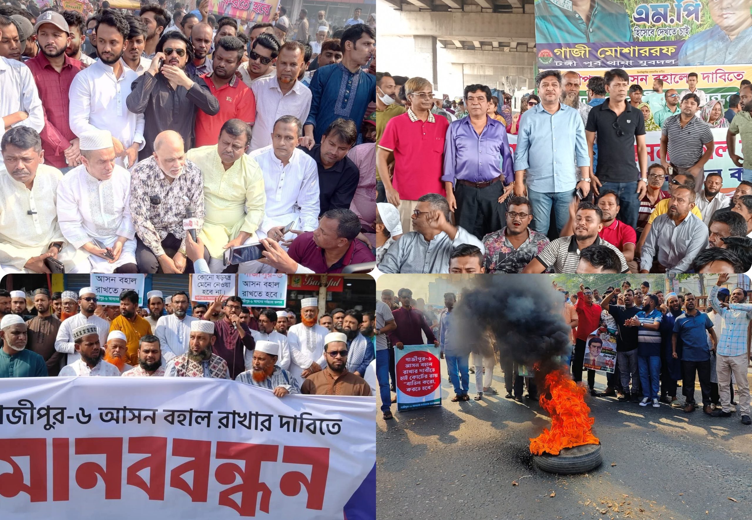 গাজীপুর-৬ আসন বহাল রাখার দাবিতে টঙ্গীর পৃথক তিনটি স্থানে ঢাকা-ময়মনসিংহ মহাসড়ক অবরোধ করে মানববন্ধন