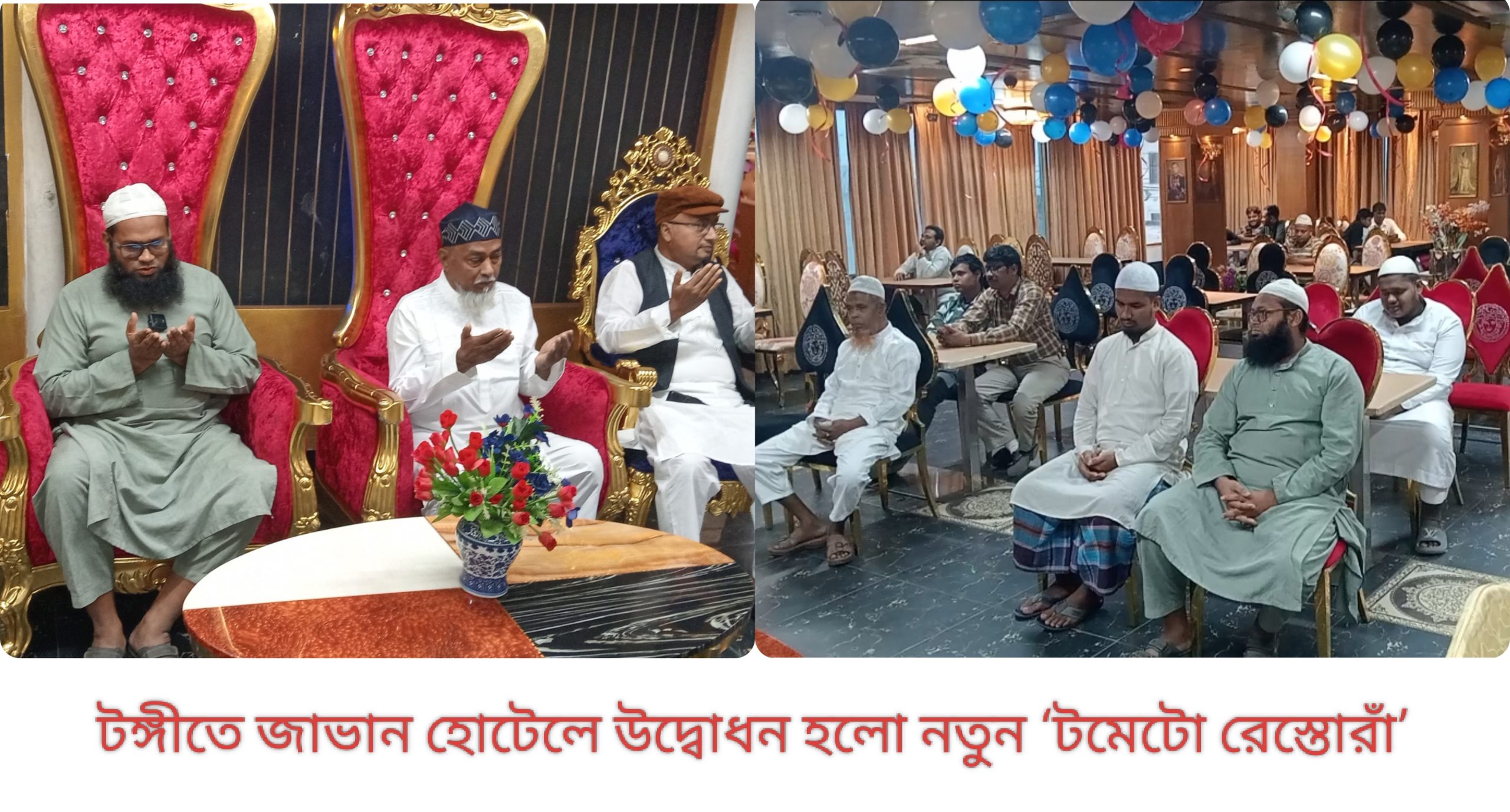 নিজস্ব প্রতিবেদক : গাজীপুরের টঙ্গীতে জাভান হোটেলের দ্বিতীয় তলায় আনুষ্ঠানিকভাবে উদ্বোধন করা হলো নতুন খাবার প্রতিষ্ঠান ‘টমেটো রেস্তোরাঁ’। শুক্রবার (১৪ নভেম্বর) বিকেলে শহীদ কেয়াম উদ্দিন মাস্টার সড়কস্থ আমতলী জাভান হোটেল চত্বরে জমকালো আয়োজনের মধ্য দিয়ে রেস্তোরাঁটির গ্র্যান্ড ওপেনিং অনুষ্ঠিত হয়। উদ্বোধনী অনুষ্ঠানে প্রধান অতিথি হিসেবে উপস্থিত থেকে টমেটো রেস্তোরাঁর আনুষ্ঠানিক উদ্বোধন ঘোষণা করেন জাভান হোটেলের ব্যবস্থাপনা পরিচালক সাইমন খান। এসময় এলাকার বিশিষ্ট সমাজসেবক ও আমতলী কামে মসজিদের সভাপতি আব্বাস আলী, হোটেল কর্মকর্তা আব্দুল আজিজ, রিলেশনশিপ ম্যানেজার মো. দেলোয়ার হোসেন দুলাল, অপারেশন ম্যানেজার সজল মজুমদার, সহকারী কোষাধ্যক্ষ অন্ত, রিয়াদ বাবু, মাসুম, মামুন, আল-আমিন রাজসহ আরও অনেকে উপস্থিত ছিলেন। অনুষ্ঠানে আমতলী এতিমখানা মাদ্রাসার শতাধিক শিক্ষার্থীও অংশ নেয়। উদ্বোধনী আয়োজনে স্বাগত বক্তব্য দেন জাভান হোটেলের রিলেশনশিপ ম্যানেজার মো. দেলোয়ার হোসেন দুলাল। তিনি জানান, টমেটো ফল যেহেতু বারো মাস পাওয়া যায়, ঠিক তেমনি সারা বছর গ্রাহকদের সেবা দেওয়ার ভাবনা থেকেই রেস্তোরাঁটির নাম রাখা হয়েছে ‘টমেটো রেস্তোরাঁ’। তিনি আরও বলেন, “টঙ্গী ও গাজীপুরের মানুষের কথা মাথায় রেখে সুলভ মূল্যে এখানে সাদা ভাত, বিভিন্ন রকম ভর্তা, গরু-খাসি-মুরগি-হাঁসের মাংসসহ নানান আইটেম পরিবেশন করা হবে। এছাড়াও বিয়ে, জন্মদিন, সেমিনারসহ বিভিন্ন অনুষ্ঠানের জন্য বুকিং সুবিধাও রাখা হয়েছে। অনুষ্ঠানের শেষে আমতলী মসজিদ এন্ড এতিমখানা মাদ্রাসার খতিব মাও. সাহাদৎ হোসেন মোনাজাত পরিচালনা করেন।