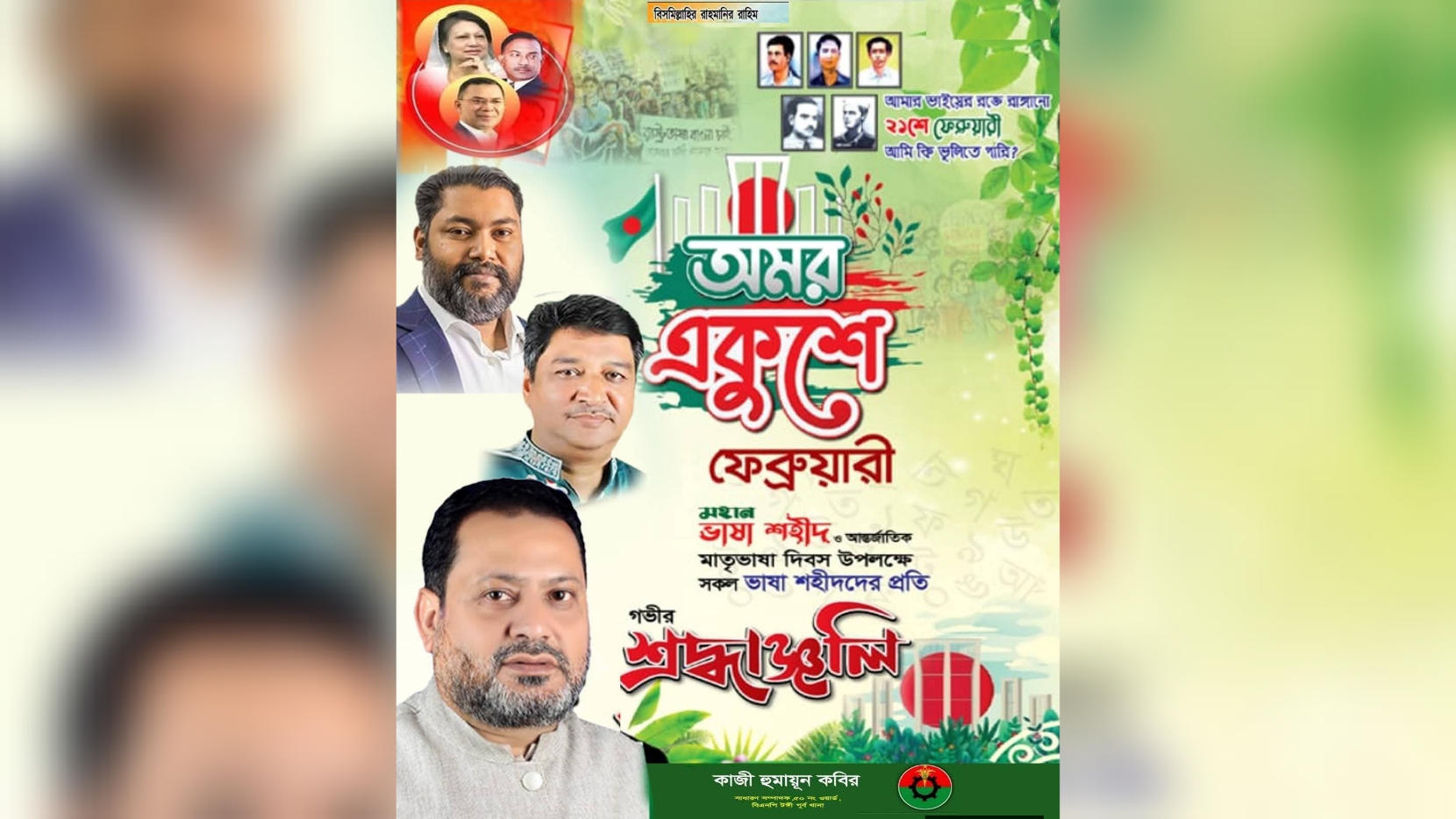 মহান ২১শে ফেব্রুয়ারি উপলক্ষে ভাষা শহীদদের প্রতি শ্রদ্ধা জানিয়েছেন ৫০ নং ওয়ার্ড বিএনপির সাধারণ সম্পাদক কাজী হুমায়ন কবির