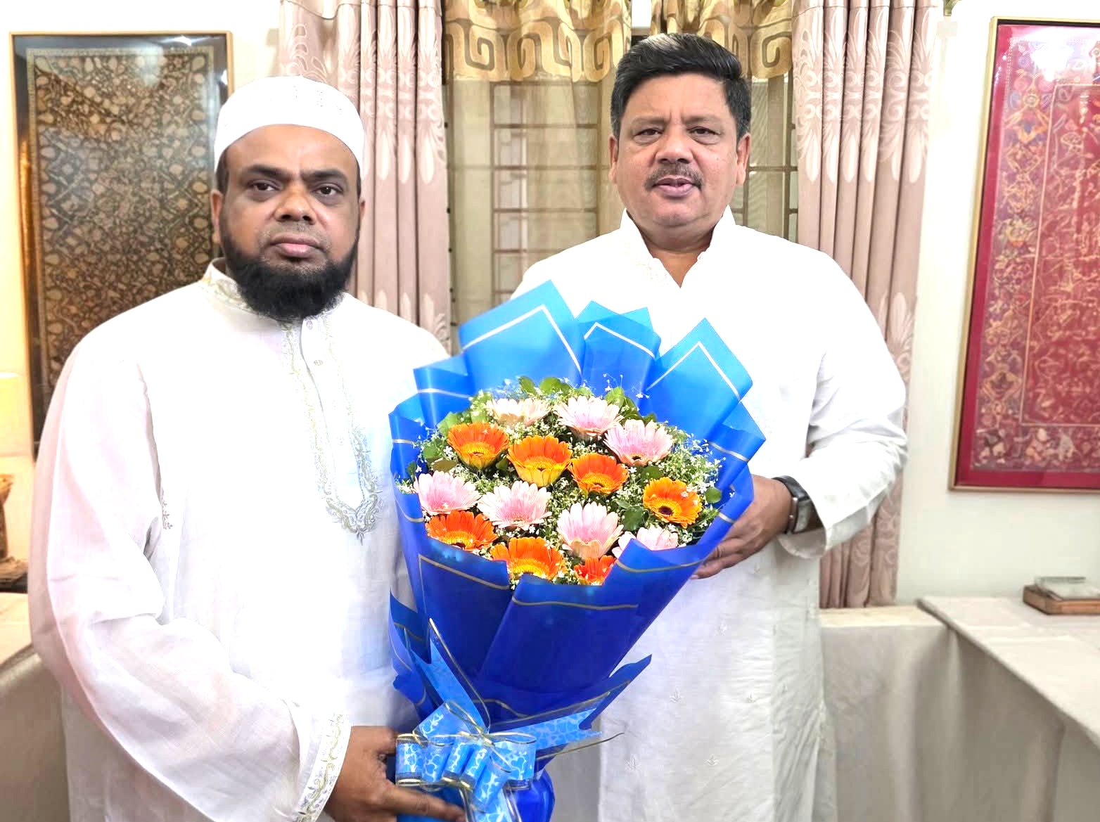 নিজস্ব প্রতিবেদক : গাজীপুর সিটি কর্পোরেশন-এর নবনিযুক্ত প্রশাসক শওকত হোসেন সরকার-কে ফুলেল শুভেচ্ছা জানিয়েছেন টঙ্গী ৫৫ নং ওয়ার্ড বিএনপির সভাপতি হাজী জহিরুল ইসলাম। সম্প্রতি আয়োজিত এক সৌজন্য সাক্ষাৎ অনুষ্ঠানে হাজী জহিরুল ইসলাম প্রশাসককে ফুলেল শুভেচ্ছা জানান এবং তাঁর নতুন দায়িত্ব পালনে সফলতা কামনা করেন। এ সময় স্থানীয় রাজনৈতিক ও সামাজিক নেতৃবৃন্দ উপস্থিত ছিলেন। সাক্ষাৎকালে নগরীর সার্বিক উন্নয়ন, নাগরিক সেবা বৃদ্ধি, জলাবদ্ধতা নিরসন, সড়ক সংস্কার ও পরিচ্ছন্নতা কার্যক্রম জোরদারের বিষয়ে আলোচনা হয় বলে জানা গেছে। হাজী জহিরুল ইসলাম বলেন, নগরবাসীর প্রত্যাশা পূরণে প্রশাসকের নেতৃত্বে গাজীপুর সিটি কর্পোরেশন আরও গতিশীল ভূমিকা রাখবে। প্রশাসক শওকত হোসেন সরকার নগরবাসীর কল্যাণে আন্তরিকভাবে কাজ করার প্রত্যয় ব্যক্ত করেন এবং সকলের সহযোগিতা কামনা করেন। স্থানীয় রাজনৈতিক অঙ্গনে এ সৌজন্য সাক্ষাৎ ইতিবাচক বার্তা হিসেবে দেখা হচ্ছে।