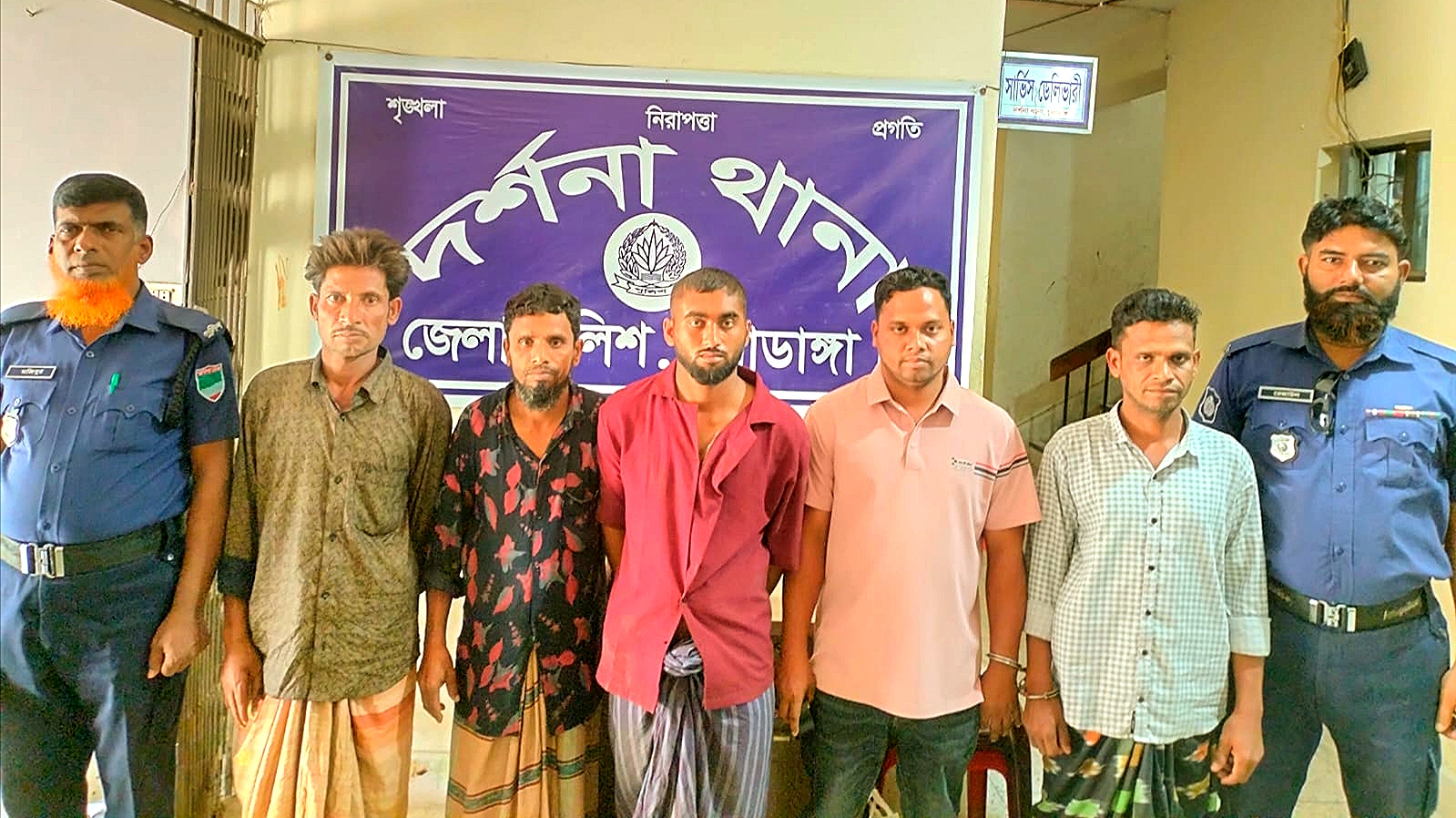 পুলিশ সূত্রে জানা যায়, দর্শনা থানার মামলা নং-০২, তারিখ ০১/০৩/২০২৬ খ্রিস্টাব্দের এজাহারভুক্ত আসামি মোঃ সাদ্দাম হোসেন (৩০), পিতা-মোঃ নুর আলম, মাতা-মোছাঃ ডালিমা খাতুন, গ্রাম-চাকুলিয়া (মাঝপাড়া), থানা-দর্শনা, জেলা-চুয়াডাঙ্গা; মোঃ শহিদুল ইসলাম (৪০), পিতা-মোঃ নুর আলম, মাতা-মোছাঃ ডালিমা খাতুন; এবং মোঃ সিরাজুল ইসলাম (৩৫), পিতা-মোঃ নুর আলম, মাতা-মোছাঃ ডালিমা খাতুন এই তিনজনকে তাদের নিজ নিজ বাড়ি থেকে গ্রেফতার করা হয়। এছাড়া দর্শনা থানার মামলা নং-০৮, তারিখ ২৪/০১/২০২৬ খ্রিস্টাব্দের এজাহারভুক্ত আসামি মোঃ মতিয়ার রহমান @ হৃদয় (২৩), পিতা-মোঃ মুকুল হোসেন, সাং-খাড়াগোদা, থানা-দর্শনা, জেলা-চুয়াডাঙ্গা কে তিতুদহ বাজার এলাকা থেকে গ্রেফতার করা হয়। অপরদিকে (জিআর-১২১/২১) মামলার ওয়ারেন্টভুক্ত আসামি মোঃ সাইফুল ইসলাম ফিল্টু (৩৫), পিতা-মোজাম্মেল হক পচা, সাং-আকন্দবাড়ীয়া নতুনপাড়া, থানা-দর্শনা, জেলা-চুয়াডাঙ্গা কে তার নিজ বাড়ি থেকে গ্রেফতার করা হয়েছে। গ্রেফতারকৃত আসামিদের ২৬ মার্চ ২০২৬ খ্রিস্টাব্দ তারিখে বিজ্ঞ আদালতে সোপর্দ করা হয়েছে বলে পুলিশ সূত্রে জানা গেছে।