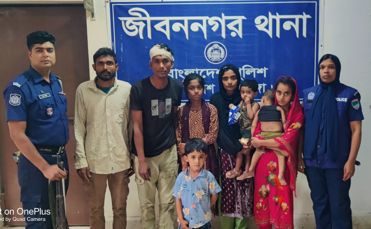 চুয়াডাঙ্গা জেলার পুলিশ সুপার মোঃ রুহুল কবীর খান এর সার্বিক দিকনির্দেশনায় এবং জীবননগর থানার অফিসার ইনচার্জ মোঃ সোলায়মান শেখ এর তত্ত্বাবধানে জীবননগর থানা পুলিশ এ অভিযান পরিচালনা করে। পুলিশ সূত্রে জানা যায়, উদ্ধারকৃত ভিকটিমদের মধ্যে কয়েকজন পূর্বে অবৈধভাবে ভারতের হরিয়ানা রাজ্যে বসবাস করতেন। আনুমানিক ৭ থেকে ৮ মাস আগে তারা সাতক্ষীরা জেলার ভোমরা সীমান্ত দিয়ে দেশে ফেরেন। পরবর্তীতে পুনরায় ভারতে প্রবেশের উদ্দেশ্যে যশোর জেলার মনিরামপুর থানার রাজঘাট এলাকার দালাল শফি (৫০)-এর মাধ্যমে জীবননগর উপজেলার বেনীপুর গ্রামের স্থানীয় দালাল ফারুক হোসেন (৪৫) ও ইসরাফিল হোসেন (২৮)-এর সাথে যোগাযোগ স্থাপন করেন। দালাল চক্রটি ভিকটিমদের ভারতে নিয়ে ‘কার্টুন তৈরির ভালো কাজ’ পাইয়ে দেওয়ার প্রলোভন দেখিয়ে মোট ১ লাখ ৬০ হাজার টাকায় চুক্তি করে।গত ০৫ এপ্রিল ২০২৬ তারিখ রাত আনুমানিক ৩টার দিকে সীমান্তবর্তী এলাকায় ঘোরাফেরার সময় দালাল ফারুক হোসেন ও ইসরাফিল হোসেন ভিকটিমদের ভারতে প্রবেশ করাতে ব্যর্থ হয়ে তাদের কাছ থেকে স্বর্ণালংকার, নগদ টাকা ও ব্যবহৃত মোবাইল ফোন কৌশলে হাতিয়ে নেয়। এ সময় ভিকটিম রাকিব মোল্লাকে মারধর করে তারা পালিয়ে যায়। ঘটনার সংবাদ পেয়ে জীবননগর থানা পুলিশ দ্রুত অভিযান চালিয়ে ঘটনার সাথে জড়িত ইসরাফিল (৩২) ও মোঃ উজ্জ্বল হোসেন (৪০) নামে ২ জনকে গ্রেফতার করতে সক্ষম হয়। পরে উদ্ধারকৃত ভিকটিমরা জীবননগর উপজেলা স্বাস্থ্য কমপ্লেক্সে প্রাথমিক চিকিৎসা গ্রহণ করেন। এ ঘটনায় সংশ্লিষ্ট থানায় আইনগত ব্যবস্থা গ্রহণের প্রক্রিয়া চলমান রয়েছে।