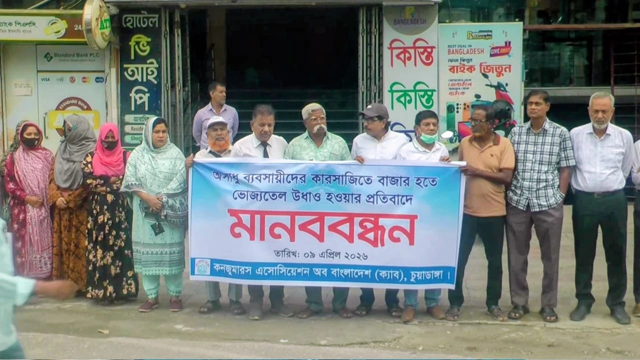 ভোজ্যতেলের বাজারে সিন্ডিকেটের কারসাজির প্রতিবাদে চুয়াডাঙ্গায় ক্যাবের মানববন্ধন