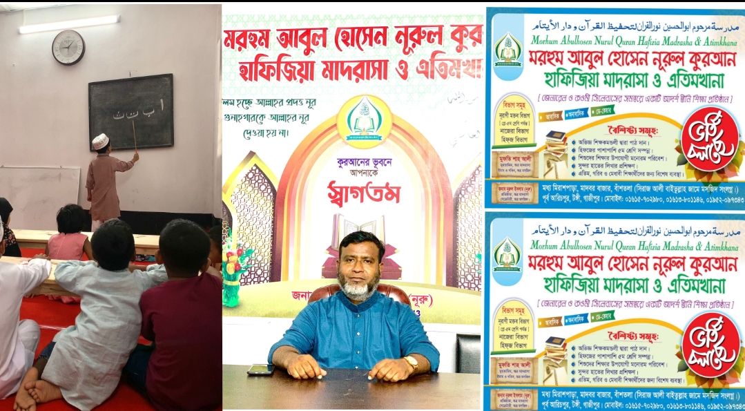 জাহাঙ্গীর আলম, ( নিজস্ব প্রতিবেদক) : সমাজে দ্বীনি শিক্ষা বিস্তার এবং এতিম ও অসহায় শিশুদের সুশিক্ষায় গড়ে তোলার লক্ষ্যে গাজীপুর মহানগরীর টঙ্গীর পূর্ব আরিচপুর এলাকায় যাত্রা শুরু করেছে একটি ব্যতিক্রমধর্মী শিক্ষা প্রতিষ্ঠান মরহুম আবুল হোসেন নুরুল কুরআন হাফিজিয়া মাদ্রাসা ও এতিমখানা। চলতি মাসের ১০ তারিখে আনুষ্ঠানিক উদ্বোধনের মধ্য দিয়ে প্রতিষ্ঠানটির কার্যক্রম শুরু হয়। উদ্বোধনের পর থেকেই এখানে নিয়মিতভাবে পাঠদান কার্যক্রম পরিচালিত হচ্ছে এবং ইতোমধ্যে বেশ কয়েকজন শিক্ষার্থী ভর্তি হয়ে শিক্ষা গ্রহণ করছে। স্থানীয় এলাকাবাসীর মধ্যেও প্রতিষ্ঠানটি নিয়ে ব্যাপক আগ্রহ ও ইতিবাচক সাড়া লক্ষ্য করা যাচ্ছে। এই মহতী উদ্যোগের নেপথ্যে রয়েছেন সমাজসেবামূলক কর্মকাণ্ডে সক্রিয় ব্যক্তি মো. নুরুল ইসলাম (নুরু)। তিনি গাজীপুর মহানগর স্বেচ্ছাসেবক দলের সাবেক সদস্য, ৪৫ নং ওয়ার্ড বিএনপি’র সহ-স্বেচ্ছাসেবক বিষয়ক সম্পাদক এবং ৪৫ নং ওয়ার্ডের কাউন্সিলর পদপ্রার্থী। ব্যক্তিগত উদ্যোগ ও সমাজের প্রতি দায়বদ্ধতা থেকেই তিনি এই মাদ্রাসা ও এতিমখানা প্রতিষ্ঠার উদ্যোগ নেন। প্রতিষ্ঠানটি এমনভাবে পরিকল্পনা করা হয়েছে, যাতে শিক্ষার্থীরা একই সঙ্গে দ্বীনি ও সাধারণ শিক্ষার সুযোগ পায়। এখানে নূরানী মক্তব বিভাগ (প্রি-প্রাইমারি থেকে ৫ম শ্রেণি পর্যন্ত), নাজেরা বিভাগ এবং হিফজ বিভাগ চালু রয়েছে। পাশাপাশি শিক্ষার্থীদের প্রয়োজন অনুযায়ী আবাসিক, অনাবাসিক ও ডে-কেয়ার সুবিধা রাখা হয়েছে। শুধু পাঠদান নয়, শিশুদের সার্বিক বিকাশের বিষয়টিও গুরুত্ব দেওয়া হয়েছে। অভিজ্ঞ শিক্ষক মণ্ডলীর মাধ্যমে পাঠদান, সুন্দর হাতের লেখা শেখানোর বিশেষ প্রশিক্ষণ এবং শিক্ষার্থীদের জন্য মনোরম ও স্বাস্থ্যসম্মত পরিবেশ নিশ্চিত করা হয়েছে। এই মাদ্রাসা ও এতিমখানার অন্যতম গুরুত্বপূর্ণ দিক হলো এখানে এতিম, গরিব ও মেধাবী শিক্ষার্থীদের জন্য বিশেষ সুযোগ-সুবিধা রাখা হয়েছে। তাদের জন্য আবাসন, শিক্ষা ও প্রয়োজনীয় সহায়তার ব্যবস্থা করা হয়েছে, যাতে তারা কোনো বাধা ছাড়াই শিক্ষা গ্রহণ করতে পারে।এলাকাবাসী মনে করছেন, এই প্রতিষ্ঠানটি ভবিষ্যতে অনেক এতিম ও সুবিধাবঞ্চিত শিশুর জীবনে আলোর দিশা হয়ে উঠবে। মাদ্রাসা ও এতিমখানাটি মধ্য মিরাশপাড়া, মাদবর বাজার, বাঁশতলা (সিরাজ আলী বাইতুল্লাহ জামে মসজিদ সংলগ্ন), পূর্ব আরিচপুর, টঙ্গী, গাজীপুর এলাকায় অবস্থিত। যোগাযোগের সুবিধাজনক অবস্থানের কারণে আশপাশের বিভিন্ন এলাকা থেকেও শিক্ষার্থীরা এখানে ভর্তি হওয়ার আগ্রহ দেখাচ্ছে।প্রতিষ্ঠাতা মো. নুরুল ইসলাম (নুরু) জানান, এতিম ও অসহায় শিশুদের জন্য একটি নিরাপদ ও মানসম্মত শিক্ষা পরিবেশ তৈরি করাই আমাদের প্রধান লক্ষ্য। উদ্বোধনের