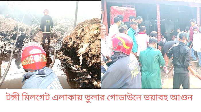 নিজস্ব প্রতিবেদক : গাজীপুরের টঙ্গী মিলগেট এলাকায় শনিবার (৮ নভেম্বর) সকালে একটি তুলার গুদাম ও পার্শ্ববর্তী কারখানায় ভয়াবহ অগ্নিকাণ্ডের ঘটনা ঘটেছে। আগুন নিয়ন্ত্রণে ফায়ার সার্ভিসের সাতটি ইউনিট কাজ করছে। ফায়ার