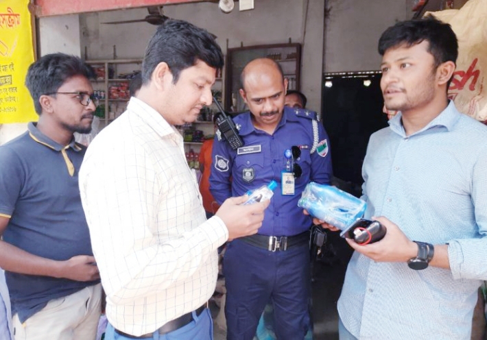 নিজস্ব প্রতিবেদক : চুয়াডাঙ্গায় ভোক্তা অধিকার সংরক্ষণ অধিদপ্তর অভিযান চালিয়ে বিভিন্ন নামি দামি কোম্পানির নকল তেল জব্দ করেছে । জব্দ করা বিপুল পরিমাণ পন্য বিনস্ট করা হয়েছে। সেই সাথে ৩০ হাজার টাকা জরিমানা আদায় করা হয়েছে নকল পণ্যের সরবরাহকারিকে। সোমবার (৪ মার্চ) বিকেলে চুয়াডাঙ্গা শহরের শ্যাকড়াতলা পাড়ায় এ অভিযান চালানো হয়। ভ্রাম্যমাণ অভিযান পরিচালনা করেন চুয়াডাঙ্গা জাতীয় ভোক্তা অধিকার সংরক্ষণ অধিদপ্তরের সহকারী পরিচালক সজল আহাম্মেদ। ভোক্তা অধিকার সংরক্ষণ অধিদপ্তরেব সহকারি পরিচালক সজল আহমেদ জানান, সদরের নীলমণিগঞ্জ বাজারে নকল প্যারাসুট তেল, জনসন ও কুমারিকা তেলসহ বিভিন্ন নকল ভেজাল পণ্য দোকানে সাপ্লাই দেয়া হচ্ছে বলে খবর পাওয়া যায়। তৎক্ষনাৎ সেখানে অভিযানে নকল ভেজাল বিভিন্ন পণ্যসহ একজনকে হাতেনাতে ধরা হয়। পরবর্তীতে তার দেয়া তথ্যমতে শেকড়াতলা মোড়ে মুল ডিলার জানিফ হাসানের বাসায় অভিযান পরিচালনা করা হয়। এসময় অভিযানের জিজ্ঞাসাবাদে সময় নকল ভেজাল পণ্য বিক্রয়ের কথা স্বীকার করেন। এই অপরাধে নকল ভেজাল পণ্যের ডিলার জানিফ হাসানকে ভোক্তা অধিকার সংরক্ষণ আইন ২০০৯ এর ৪১ ধারায় ৩০ হাজার জরিমানা করা হয়। তিনি আরও জানান, জরিমানার শেষ পর্বে জব্দকৃত নকল ভেজাল প্যারাসুট তেল, জনসন ও কুমারিকা তেলসহ অন্যান্য নকল পণ্য জনসম্মুখে নষ্ট করা হয়। এসময় অভিযানটি সহযোগিতা করেছেন এস আই হাসানের নেতৃত্বে চুয়াডাঙ্গা সদর থানা পুলিশের একটি টিম। জনস্বার্থে এ অভিযান অব্যাহত থাকবে বলে জানান ভোক্তা অধিকার সংরক্ষণ অধিদপ্তরের সহকারী পরিচালক সজল আহাম্মেদ ।