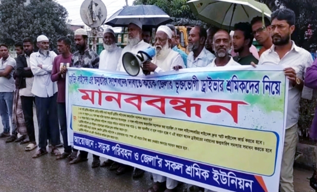 চুয়াডাঙ্গায় ড্রাইভিং লাইসেন্স নবায়নের দাবিতে মানববন্ধন
