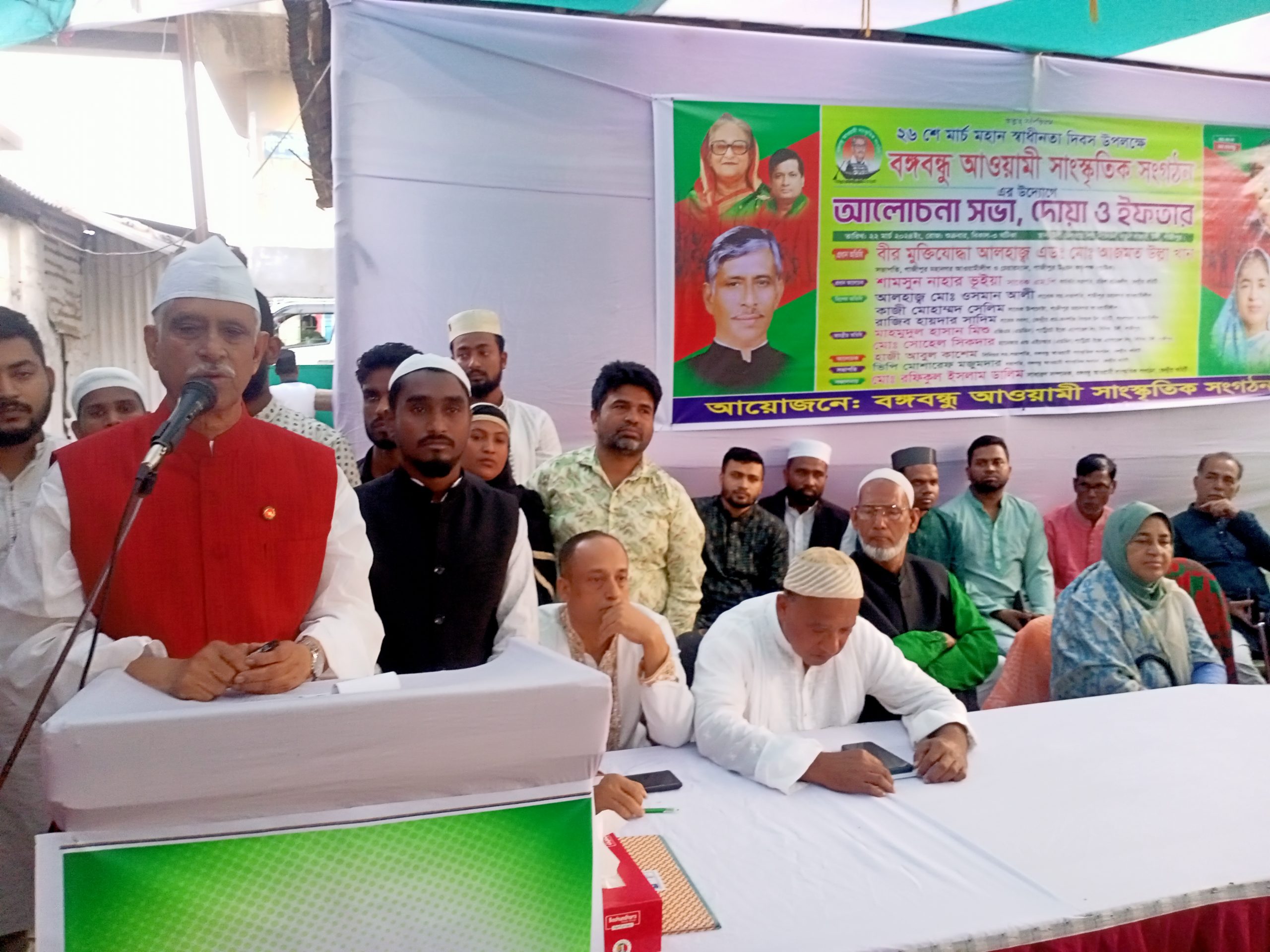 টঙ্গীতে বঙ্গবন্ধু আওয়ামী সাংস্কৃতিক সংগঠনের উদ্যোগ ২৬শে মার্চ মহান স্বাধীনতা দিবস উপলক্ষে আলোচনা সভা ও ইফতার মাহফিল গতকাল শুক্রবার টঙ্গীর নতুন বাজার রেলওয়ে শিশু নিকেতন মাঠে অনুষ্ঠিত হয়েছে। বঙ্গবন্ধু আওয়ামী সাংস্কৃতিক সংগঠন কেন্দ্রীয় কমিটির সিনিয়র সহ সভাপতি হাজী আবুল কাশেমের সভাপতিত্বে এবং কেন্দ্রীয় কমিটির সাধারণ সম্পাদক মোঃ রফিকুল ইসলাম ডালিমের পরিচালনায় আলোচনা সভা ও ইফতার মাহফিলে প্রধান অতিথি হিসেবে বক্তব্য রাখেন গাজীপুর মহানগর আওয়ামী লীগের সভাপতি, গাজীপুর উন্নয়ন কতৃপক্ষের চেয়ারম্যান বীর মুক্তিযোদ্ধা আলহাজ্ব এ্যাডঃ মোঃ আজমত উল্লা খান। প্রধান আলোচক হিসেবে বক্তব্য রাখেন বাংলাদেশ মহিলা শ্রমিক লীগ কেন্দ্রীয় কমিটির কার্যকরী সভাপতি, সংরক্ষিত সাবেক সংসদ সদস্য বেগম শামসুন নাহার ভুইঁয়া এমপি, বিশেষ অতিথি হিসেবে বক্তব্য রাখেন গাজীপুর মহানগর আওয়ামী লীগের সাবেক উপদেষ্টা আলহাজ্ব কাজী মোঃ সেলিম,টঙ্গী থানা আওয়ামী লীগের সাবেক সাধারণ সম্পাদক এ্যাডঃ মোঃ হেলাল উদ্দিন, বাংলাদেশ আওয়ামী লীগ কেন্দ্রীয় শ্রম ও জনশক্তি বিষয়ক উপ কমিটির সাবেক সদস্য রাজিব হায়দার সাদিম, টঙ্গী ক্লাবের সভাপতি মাকসুদুর রহমান মাইভী,আওয়ামী লীগ নেতা মোঃ তকদির হোসেন, আব্দুল্লাহ আল হাতেম,শাহজাহান তপন, মোঃ দেলোয়ার হোসেন, মাওলানা শামীম হাসান, মোঃ সিরাজুল ইসলাম বাবু,গাজীপুর মহানগর বঙ্গবন্ধু আওয়ামী সাংস্কৃতিক সংগঠন সভাপতি মোঃ ফারুকুল জামান,আশিক ইসলাম অভি,নুরুন নাহার, মাহমুদুল হাসান মিশু,সোহেল সিকদার প্রমুখ। আলোচনা সভা শেষে দোয়া ও ইফতার মাহফিলের আয়োজন করা হয়।