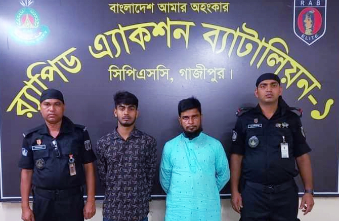 প্রেস বিজ্ঞপ্তি : গাজীপুরে গাঁজা পরিবহণের কাজে ব্যবহৃত প্রাইভেটকার সহ ১০৬ কেজি গাঁজা উদ্ধার করেছে র্যাব-১,এসময় মাদক সিন্ডিকেটের মূলহোতাসহ ২ জন বড় মাদক ব্যবসায়ীকে গ্রেফতার করা হয়েছে। র্যাপিড এ্যাকশন ব্যাটালিয়ন (র্যাব) প্রতিষ্ঠালগ্ন থেকে সব সময়ই মাদক উদ্ধারের ক্ষেত্রে অত্যন্ত অগ্রণী ভূমিকা পালন করে আসছে। এই পর্যন্ত র্যাব বিপুল পরিমাণ দেশী বিদেশী মাদক উদ্ধার করে জনমনে আস্থা অর্জন করতে সক্ষম হয়েছে। “চলো যায় যুদ্ধে মাদকের বিরুদ্ধে ”এই স্লোগানে উজ্জীবিত হয়ে র্যাব ফোর্সেস মাদক চোরাকারবারীদের বিরুদ্ধে কঠোর অবস্থান গ্রহণ করেছে। র্যাব মাদক ব্যবসায়ীদের গ্রেফতার করে আইনের আওতায় আনতে নিয়মিত গোয়েন্দা নজরদারীর পাশাপাশি সফল অভিযান পরিচালনা করে আসছে। এ যাবৎ র্যাব-১ অসংখ্য সফল অভিযান পরিচালনার মাধ্যমে বিপুল পরিমান মাদক দ্রব্য উদ্ধার করেছে এবং মাদক কারবারীদের গ্রেফতার করে আইনের আওতায় নিয়ে এসেছে। এরই ধারাবাহিকতায় বৃহস্পতিবার ( ২৮ মার্চ) ২০২৪ তারিখ আনুমানিক ১৯.৫০ ঘটিকায় র্যাব-১, উত্তরা, ঢাকা এর একটি আভিযানিক দল গোপন সংবাদের ভিত্তিতে জানতে পারে যে, অবৈধ মাদকদ্রব্য গাঁজার একটি বড় চালান নিয়ে গাজীপুর হয়ে রাজশাহী জেলার দিকে যাচ্ছে। প্রাপ্ত সংবাদের ভিত্তিতে আভিযানিক দলটি জিএমপি, গাজীপুর সদর থানাধীন পোড়াবাড়ী সাকিনস্থ উত্তর সালনা কাটার মাথায় নিউ জুবায়ের হোটেল এন্ড রেষ্টুরেন্ট এর সামনে ময়মনসিংহ টু ঢাকাগামী মহাসড়কের উপর অভিযান পরিচালনা করে বড় মাদক ব্যবসায়ী মোঃ আবুল বাশার (৩৯) পিতা-মোঃ চারু মিয়া, সাং-বায়েক, উত্তরপাড়া, পো-সালদানদী, থানা-কসবা, জেলা-ব্রাহ্মণবাডিয়া এবং মাদক বহানকারী মোঃ রাহিম মোল্লা (২০) পিতা-মোঃ শাহাজান মোল্লা, মাতা-মোছাঃ আলেকা বেগম, সাং-বায়েক, উত্তরপাড়া, পো-সালদানদী, থানা-কসবা, জেলা-ব্রাহ্মণবাড়িয়া দ্বয়’কে গ্রেফতার করে। এসময় ধৃত আসামীর নিকট হতে ১০৬ কেজি গাঁজা (যার অর্থমূল্য ১৫,৯০,০০০ টাকা) ১টি প্রাইভেটকার ৪টি মোবাইল ফোন, ১টি হেডফোন, ১টি হাতঘড়ি এবং নগদ ১১৯৭০/-টাকা উদ্ধার করা হয়। আটককৃত আসামীকে প্রাথমিক জিজ্ঞাসাবাদে জানা যায় যে, সে দীর্ঘদিন যাবৎ বাংলাদেশের বিভিন্ন জেলার সীমান্ত এলাকা হতে মাদকদ্রব্য গাঁজা সংগ্রহ করে দেশের বিভিন্ন প্রান্তে গাঁজা ক্রয়-বিক্রয় করে আসছে। আসামী বিভিন্ন সময় সুকৌশলে আইন-শৃঙ্খলা বাহিনীর চোখ ফাঁকি দিয়ে অবৈধ মাদক দ্রব্য গাঁজা পরিবহন করে রাজধানী ঢাকা এবং গাজীপুর’সহ দেশের বিভিন্ন এলাকায় খুচরা মাদক ব্যবসায়ীদের নিকট সরবরাহ করেছে মর্মে স্বীকার করে। উদ্ধারকৃত মাদকদ্রব্য ও গ্রেফতারকৃত আসামীদের বিরুদ্ধে আইনানুগ ব্যবস্থা প্রক্রিয়াধীন।