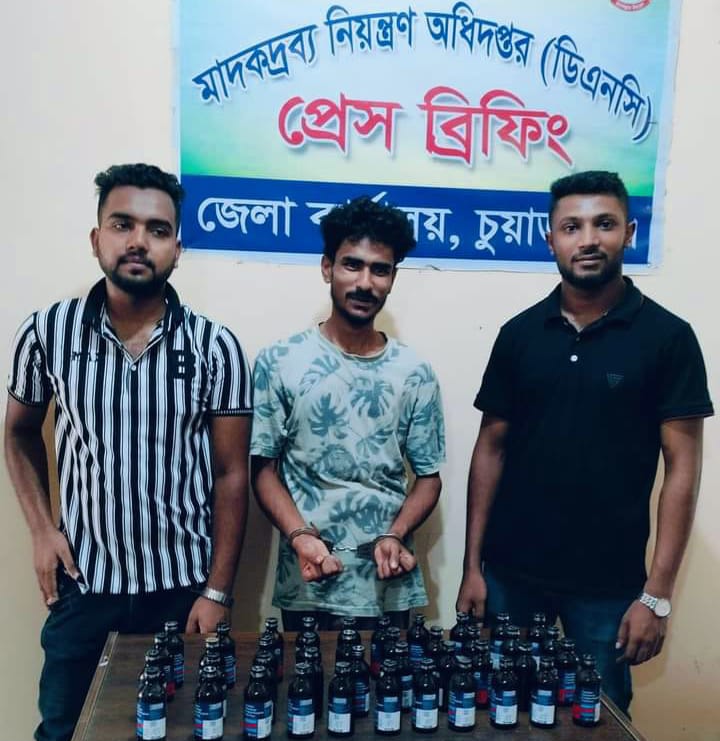 চুয়াডাঙ্গা জেলা মাদকদ্রব্য নিয়ন্ত্রন অধিদপ্তরের মাদক বিরোধী অভিযানে ৪১ বোতল ফেনসিডিল সহ আটক-১