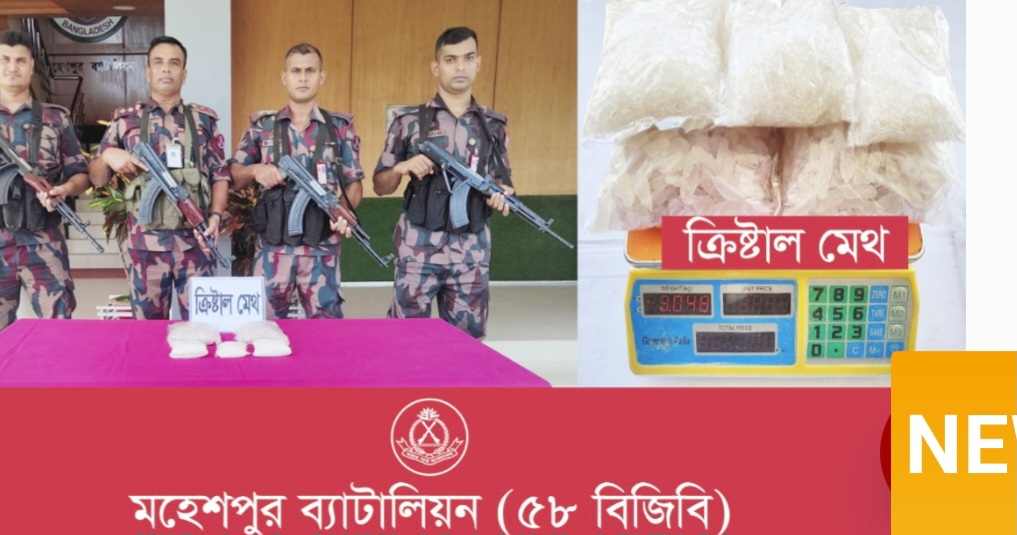 নিজস্ব প্রতিবেদক : চুয়াডাঙ্গার জীবননগরে বিজিবির এক অভিযানে ১৫ কোটি ২০লাখ টাকার ভারতীয় ক্রিস্টাল মেথ আইস নামের মাদক উদ্ধার হয়েছে। ২৯ আগস্ট বৃহস্পতিবর দুপুর ২ টার দিকে জীবননগরের বাকা মোড় ফুল বাজারের সামনে যাত্রীবাহী বাস তল্লাশি করে। এসময় লাগেজ বক্সের ভেতর থেকে মালিক বিহীন ১৫ কোটি ২০ লাখ টাকা মূল্যের ভারতীয় ক্রিস্টাল মেথ আইস নামের মাদক উদ্ধার করে।বিজিবির মহেশপুর-৫৮ ব্যাটালিয়নের পক্ষে উপ-অধিনায়ক মেজর মোল্লা ওবায়েদুর রহমান বৃহস্পতিবার বিকেলে এক প্রেস বিজ্ঞপ্তির মাধ্যমে সাংবাদিকদের বলেন,ঝিনাহদহের মহেশপুর বিজিবি সদস্যরা একটি তথ্যের মাধ্যমে জানতে পারে যশোর থেকে একটি ছেড়ে আসা দর্শনা গামী যাত্রীবাহী বাসের লাগেজ বক্সের ভেতর মাদকের একটি বড় চালান যশোর হতে দর্শনা নিয়ে যাওয়া হচ্ছে।এ তথ্যের ভিত্তিতে মহেশপুর-৫৮ ব্যাটালিয়নের একটি বিশেষ টহল দল দু’ভাগে বিভক্ত হয়ে জীবননগর বাকা মোড় ফুলের বাজারের সামনে সড়কের ওপর পৃথক স্থানে অবস্থান নেয়। পরে যশোর হতে দর্শনা গামী শাপলা পরিবহনের একটি যাত্রীবাহী বাস ২টার দিকে বাকা ফুলের বাজারের সামনে আসলে বিজিবি টহল দল বাসের গতিরোধ করে বাস তল্লাশী করে।এসময় বাসের ভেতর পেছনের ডান দিকে প্লাস্টিকের ব্যাগের মধ্যে স্বচ্ছ স্কসটেপ দিয়ে মোড়ানো খাকী রংয়ের একটি কার্টুন মালিক বিহীন অবস্থায় জব্দ করে। পরে কার্টুনটি ব্যাটালিয়ন সদরে নিয়ে তার ভেতর হতে ১৫ কোটি ২০ লাখ টাকা মূল্যের তিন কেজি ৪০ গ্রাম ওজনের অতি মূল্যবান মাদক ক্রিস্টাল মেথ আইস উদ্ধার করে।