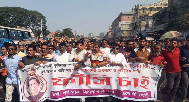 গাজীপুরের সাবেক ভারপ্রাপ্ত মেয়র কিরনের বিচারের দাবিতে টঙ্গীতে বিএনপির বিক্ষোভ মিছিল