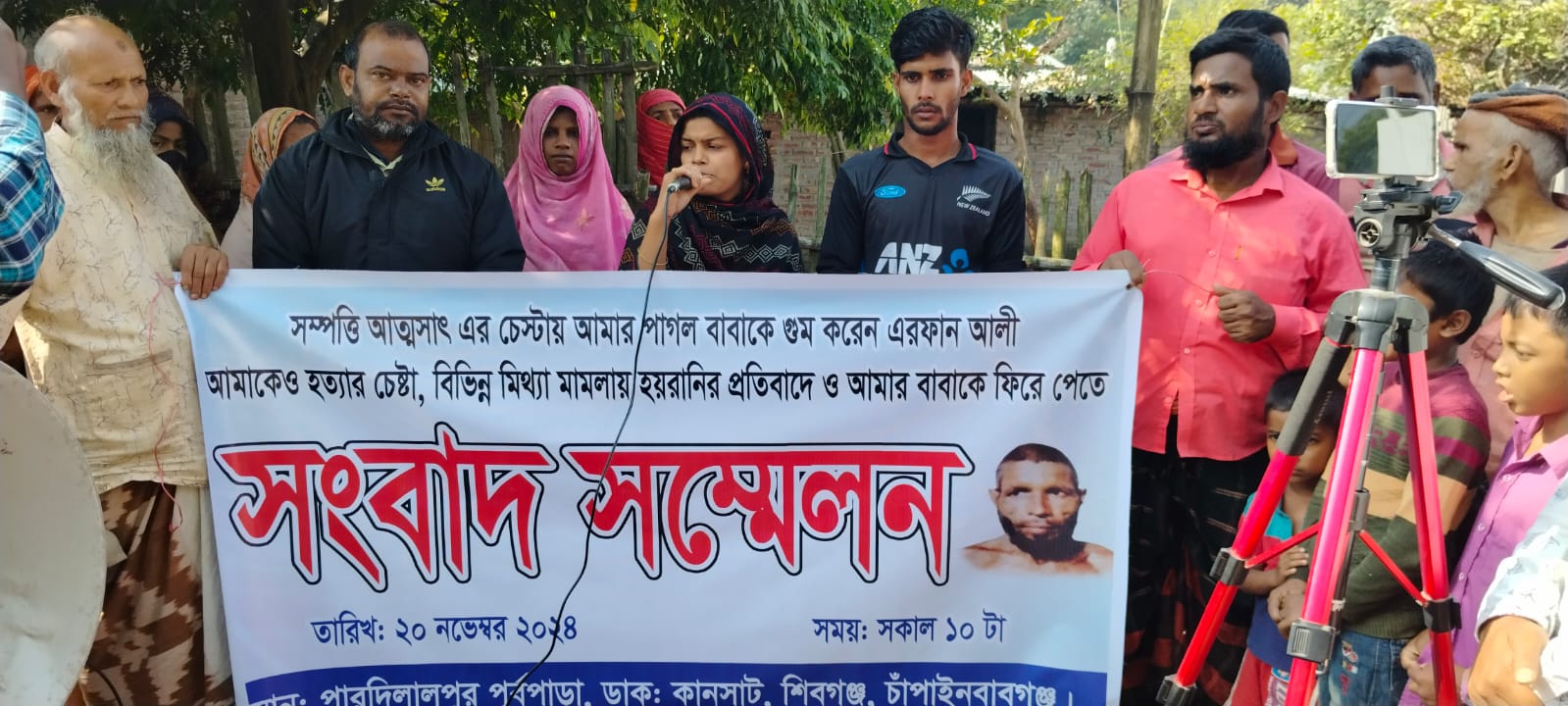 নিজস্ব প্রতিবেদক : চাঁপাইনবাবগঞ্জে শিবগঞ্জে সম্পত্তি আত্মসাৎ ও গাজলু (ভারসাম্যহীন) কে গুম, হত্যার চেষ্টা ও বিভিন্ন মিথ্যা মামলা দিয়ে স্থানীয়দের হয়রানির প্রতিবাদে মানববন্ধন ও সংবাদ সম্মেলন করেছে এলাকাবাসী। বুধবার (২০ নভেম্বর) সকালে শিবগঞ্জ উপজেলার শাহবাজপুর ইউনিয়নের পারদিলালপুর গ্রামে এ মানববন্ধন ও সংবাদ সম্মেলন হয়।ঘন্টাব্যাপী চলা মানববন্ধনে বক্তারা বলেন, সম্পত্তি আত্মসাৎ ও গাজলু (ভারসাম্যহীন) কে গুম, তাঁর ছেলে ও ছেলে বউকে হত্যার চেষ্টা ও বিভিন্ন মিথ্যা মামলা দিয়ে হয়রানির করেছে পারদিলাল পুর চাইপাড়া গ্রামের মৃত্য আবু সাত্তার ছেলে এরফান আলী। এরফান আলীর শশুর মৃত রুহুল আমিনের জমি আত্মসাৎ এর উদ্দেশ্যে নিজ শ্যালক গাজলু (ভারসাম্যহীন) কে গুমের অভিযোগ করেন গাজলু (ভারসাম্যহীন)’র ছেলে সোহেল রানাসহ স্থানীয় ভুক্তভোগীরা। সেই সাথে এরফান আলী দৃষ্টান্তমূলক শাস্তি দাবি করেন । এসময় বক্তব্য রাখেন, গাজলু (ভারসাম্যহীন)’র ছেলে সোহেল রানা, আবু তাহের, গিয়াস উদ্দীন, সিমা খাতুনসহ স্থানীয়রা। এব্যাপারে এরফান আলী সম্পত্তি আত্মসাৎ ও গাজলু (ভারসাম্যহীন) কে গুম, হত্যার চেষ্টা, বিভিন্ন মিথ্যা মামলায় হয়রানির অভিযোগ অস্বীকার করেন এবং তাঁর স্ত্রী ও মৃত এক শ্যালকের রেকর্ড সূত্রে সম্পত্তির ভাগ পেলেও ভারসাম্যহীন গাজলু সম্পত্তির ভাগ পাই নাই বলে স্বীকার করেন তিনি।