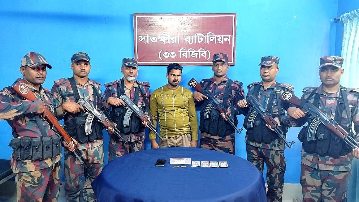 সাতক্ষীরা প্রতিনিধি : সাতক্ষীরায় পায়ুপথে স্বর্ণের বার পাচারের সময় এক যুবক আটক করেছি বিজিবি। সাতক্ষীরা ৩৩ ব্যাটালিয়ন বিজিবি’র সদস্যরা রবিবার ভোররাতে সাতক্ষীরা সদরের হরিশপুর এলাকা হতে তাকে আটক করে। আটককৃত ব্যক্তি সদরের হরিশপুর এলাকার শহিদুল ইসলামের ছেলে আল আমিন (২৫)। সাতক্ষীরা ৩৩ ব্যাটালিয়ন বিজিবি’র অধিনায়ক লেঃ কর্নেল মোঃ আশরাফুল হক এক প্রেস বিজ্ঞপ্তিতে এসব তথ্য জানান। বিজিবি’র অধিনায়ক জানান, গোয়েন্দা তথ্যের ভিত্তিতে জানা যায় হরিশপুর এলাকা দিয়ে স্বর্ণ ভারতে পাচারের উদ্দেশ্যে গমন করবে। এমন সংবাদের ভিত্তিতে ব্যাটালিয়নের ভোমরা কোম্পানী কমান্ডার সুবেদার মোঃ নাসির উদ্দীন এর নেতৃত্বে একটি চৌকষ আভিযানিক দল হরিশপুর কৌশলে অবস্থান গ্রহণ করে। এ সময় আভিযানিকদল ওই স্থানে হরিশপুর পাকা রাস্তা হতে পায়ে হেঁটে নিজ বাড়ীর উদ্দেশ্যে গমনকালে সন্দেহজনক ভাবে মোঃ আল আমিন নামের এক যুবককে আটক করে। এসময় আটককৃত যুবকের ব্যাপক জিজ্ঞাসাবাদ করলে প্রাথমিক ভাবে তার পায়ুপথে স্বর্ণের বার রয়েছে বলে স্বীকার করে। পরবর্তীতে ঔষধ প্রয়োগ করে তার পায়ু পথ হতে ২টি স্বর্ণের বার উদ্ধার করা হয়। উদ্ধারকৃত স্বর্ণের আনুমানিক ওজন ২শ ৩৩ গ্রাম। যার মূল্য ২৭ লক্ষ ৪৪ হাজার ৩শ চার টাকা। এসময় তার কাছ থেকে একটি মোবাইল ফোন ও নগত ৪ হাজার টাকা উদ্ধার করাহয়। এ ব্যাপারে সাতক্ষীরা সদর থানায় মামলা দায়ের করে স্বর্ণের বারগুলো ট্রেজারী অফিসে জমা এবং আসামীকে থানায় সোপর্দের কার্যক্রম প্রক্রিয়াধীন রয়েছে বলেও জানান তিনি।