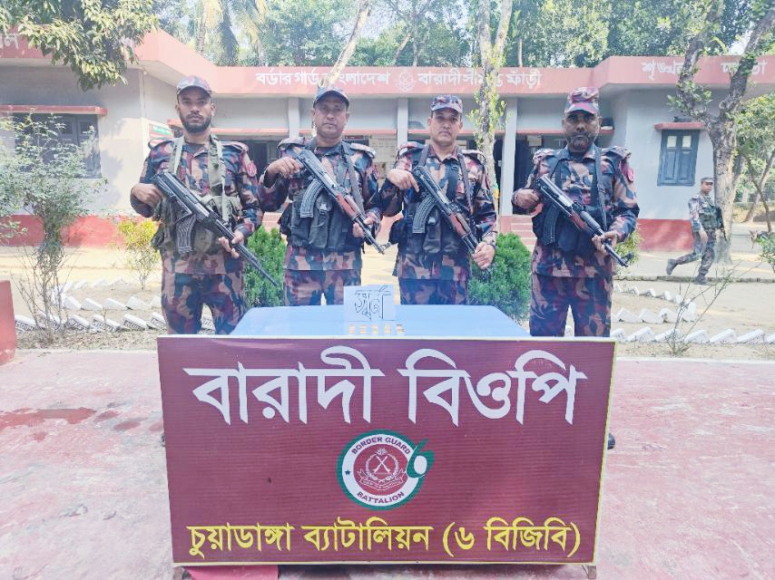 নিজস্ব প্রতিবেদক : চুয়াডাঙ্গার দামুড়হুদা উপজেলার নাস্তিপুর সীমান্ত এলাকা থেকে প্রায় দেড় কোটি টাকা মূল্যের ১০টি স্বর্ণের বার জব্দ করেছে বিজিবি। মঙ্গলবার সকালে বর্ডার গার্ড বাংলাদেশ (চুয়াডাঙ্গা ৬ বিজিবি) অভিযান চালিয়ে স্বর্ণের বারগুলো জব্দ করে। চুয়াডাঙ্গা-৬ বিজিবির অধিনায়ক লে. কর্নেল সাঈদ মোহাম্মদ জাহিদুর রহমান স্বাক্ষরিত এক প্রেস বিজ্ঞপ্তির মাধ্যমে বিষয়টি গণমাধ্যম কর্মীদেরকে নিশ্চিত করেছেন। মঙ্গলবার (১০ ডিসেম্বর) দুপুরে ১টার দিকে পাঠানো বিজ্ঞপ্তিতে জানানো হয়, বিজিবি সদস্যরা গোপন সংবাদের মাধ্যমে জানতে পারেন, চুয়াডাঙ্গা জেলার দর্শনা থানার অন্তর্গত বারাদী বিওপির দায়িত্বপূর্ণ এলাকা দিয়ে সোনার একটি চালান পাচার করা হবে। এ তথ্যের ভিত্তিতে বাড়াদী বিওপির কমান্ডার হাবিলদার খন্দকার ওবায়দুর রহমান সঙ্গীয় জওয়ানদের নিয়ে সীমান্তের শূন্যরেখা থেকে ১০০ গজ বাংলাদেশের অভ্যন্তরে নাস্তিপুর আমবাগানে অবস্থান নেয়। সকাল পৌনে ১০টার দিকে বিজিবি সদস্যরা সন্দেহভাজন এক ব্যক্তিকে ওই এলাকা দিয়ে যেতে দেখলে তাকে চ্যালেঞ্জ করে। এ সময় ওই ব্যক্তি তার কাছে থাকা একটি প্যাকেট ফেলে পালিয় যায়।