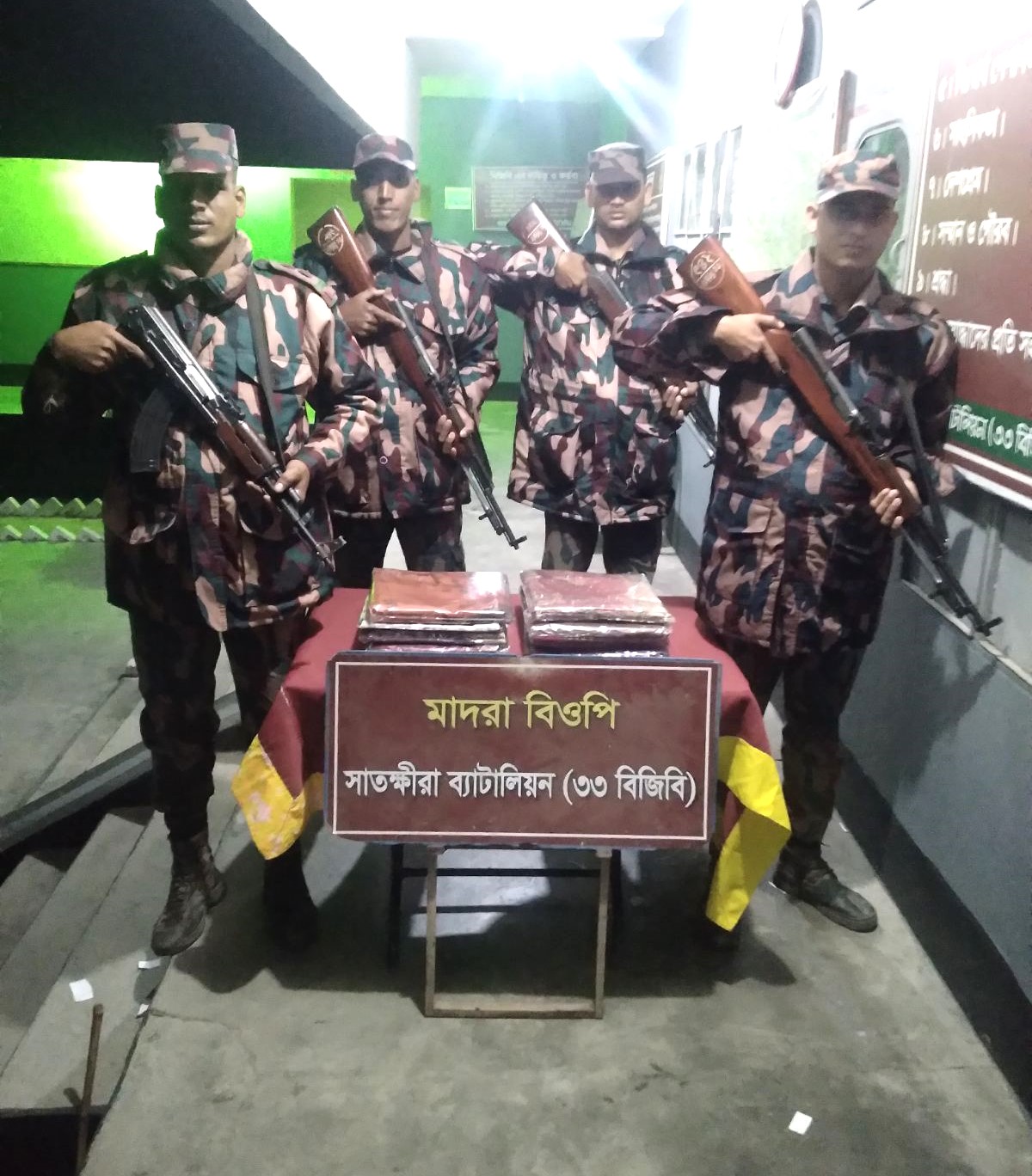 সাতক্ষীরা প্রতিনিধি : সাতক্ষীরা ও কলারোয়া সীমান্তে চোরাচালান বিরোধী বিশেষ অভিযান পরিচালনা করে মাদকদ্রব্যসহ প্রায় সাড়ে চার লক্ষ টাকার ভারতীয় মালামাল জব্দ করেছে বিজিবি। ১৪ ডিসেম্বর ২০২৪ তারিখ সাতক্ষীরা ব্যাটালিয়ন (৩৩ বিজিবি) এর অধিনস্থ পদ্মশাখরা, কাকডাঙ্গা ও মাদরা বিওপির সীমান্ত এলাকায় বিশেষ চোরাচালান বিরোধী অভিযান পরিচালনা করে মাদকদ্রব্যসহ প্রায় সাড়ে চার লক্ষ টাকার ভারতীয় মালামাল আটক করে। সাতক্ষীরা ব্যাটালিয়ন (৩৩ বিজিবি)র অধিনায়ক লেঃ কর্নেল মোঃ আশরাফুল হক, পিবিজিএম, পিএসসি,জি পরিচালক গোয়েন্দা তথ্যের ভিত্তিতে পদ্মশাখরা বিওপির বিশেষ আভিযানিক দল সীমান্ত পিলার ১/২২-এস হতে আনুমানিক ০১ কিঃমিঃ বাংলাদেশের অভ্যন্তরে সাতক্ষীরা সদর থানাধীন কপালিপাড়া নামক স্থান হতে ২০ বোতল ভারতীয় নেশা জাতীয় সিরাপ আটক করে। এছাড়াও, কাকডাঙ্গা বিওপির বিশেষ আভিযানিক দল সীমান্ত পিলার ১৩/৩ এস হতে আনুমানিক ৪০০ গজ বাংলাদেশের অভ্যন্তরে কলারোয়া থানাধীন গেড়াখালী খেয়াঘাট নামক স্থান হতে ২০ বোতল ভারতীয় মদ আটক করে। কাকডাঙ্গা বিওপির বিশেষ পৃথক দুইট আভিযানিক দল সীমান্ত পিলার ১৩/৩ এস হতে আনুমানিক ৪০০-৮০০ গজ বাংলাদেশের অভ্যন্তরে কলারোয়া থানাধীন গেড়াখালী খেয়াঘাট এবং বোয়ালিয়া মাঠ নামক স্থান হতে ৩ লক্ষ ৫৩ হাজার টাকা মূল্যের ভারতীয় ঔষধ, থ্রী পিচ এবং ভারতীয় চাদর আটক করে। এছাড়াও, মাদরা বিওপির বিশেষ আভিযানিক দল সীমান্ত পিলার ১৩/৩-এস হতে আনুমানিক ১৫০ গজ বাংলাদেশের অভ্যন্তরে কলারোয়া থানাধীন শ্মশান ঘাট নামক স্থান হতে ৩০ হাজার টাকা মূল্যের ভারতীয় ঔষধ আটক করে। সর্বমোট ৪ লক্ষ ২১ হাজার টাকা মূল্যের বিভন্ন চোরাচালানী মালামাল আটক করে।চোরাকারবারী কর্তৃক বর্ণিত মালামাল শুল্ককর ফাঁকি দিয়ে অবৈধভাবে ভারত হতে বাংলাদেশে পাচার করায় জব্দ করা হয়। এভাবে ভারতীয় দ্রব্য সামগ্রী চোরাচালানের কারনে দেশীয় শিল্প ক্ষতিগ্রস্থ হবার পাশাপাশি দেশ উল্লেখযোগ্য রাজস্ব আয় হতে বঞ্চিত হচ্ছে। বিজিবি টহলদল কর্তৃক উদ্ধারকৃত ভারতীয় মালামাল সাতক্ষীরা কাস্টমস এ জমা করার কার্যক্রম প্রক্রিয়াধীন রয়েছে। এছাড়াও মাদকদ্রব্য সমূহ সাতক্ষীরা মাদকদ্রব্য নিয়ন্ত্রন অধিদপ্তরে সাধারণ ডায়েরী করতঃ পরবর্তীতে জনসম্মুখে ধ্বংসের নিমিত্তে ষ্টোরে জমা হয়েছে। দেশের রাজস্ব ফাঁকি রোধ করে স্থানীয় শিল্প বিকাশে এবং দেশের তরুন/যুব সম্প্রদায়কে মাদকের নির্মম ছোবল হতে রক্ষা করার মহতী উদ্যেগে বিজিবি’র এরূপ দেশপ্রেমিক ও জনস্বার্থে পরিচালিত অভিযানে উপস্থিত স্থানীয় জনগন সাধুবাদ জ্ঞাপন করে এ ধরণের অভিযান অব্যাহত রাখার জন্য অনুরোধ করেন।