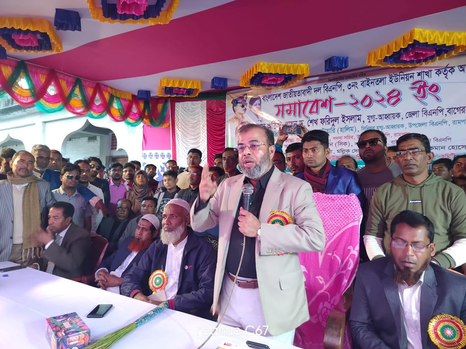 রামপাল(বাগেরহাট)প্রতিনিধি : বাগেরহাটের রামপাল উপজেলার বাইনতলা ইউনিয়নের বিএনপি’র কর্মী সমাবেশকে কেন্দ্র করে জনতার ঢল নেমে আসে। সমাবেশ শুরুর আগে ইউনিয়নের সকল ওয়ার্ড ও পাশ্ববর্তী ইউনিয়নগুলো থেকে প্রচন্ড শীত উপেক্ষা করে খণ্ড খণ্ড মিছিল নিয়ে আসে নেতাকর্মীরা। স্লোগানে স্লোগানে মুখরিত হয় পুরো এলাকা। নেতা-কর্মীরা মাথায় জাতীয় পতাকা বেঁধে এবং হাতে জাতীয় ও দলীয় পতাকা নিয়ে উল্লাস করছেন।শনিবার(১৪ ডিসেম্বর) বিকেলে বাইনতলা ইউনিয়ন বিএনপি ও অঙ্গ সহযোগী সংগঠনের আয়োজনে শরাফপুর মাদ্রাসা মাঠে এ কর্মী সমাবেশ অনুষ্ঠিত হয়। সমাবেশ পরিচালনা কমিটির আহ্বায়ক তালুকদার বদিউজ্জামান মিনার সভাপতিত্বে সমাবেশে প্রধান অতিথির বক্তব্য রাখেন সেভ দ্যা সুন্দরবন ফাউন্ডেশন’র চেয়ারম্যান ও জেলা বিএনপি’র যুগ্ম আহ্বায়ক লায়ন ডক্টর শেখ ফরিদুল ইসলাম। বিশেষ অতিথির বক্তব্য রাখেন উপজেলা বিএনপি’র সিনিয়র যুগ্ম আহ্বায়ক মোস্তফা কামাল পাটোয়ারী হালিম ও সদস্য সচিব কাজী জাহিদুল ইসলাম। এসময় উপস্থিত ছিলেন বিএনপি নেতা সরদার মাহফুজুর রহমান (চিক), শেখ ফিরোজ কবির, মল্লিক জিয়াউল হক জিয়া, কাজী অজিয়ার রহমান, এস এম আলমগীর কবির বাচ্চু, মোঃ শাহাদাৎ হোসেন, শাহাজালাল গাজী, আলতাফ হোসেন বাবুল, ছাত্রদল নেতা মোল্লা তরিকুল ইসলাম শোভন, মোফাজ্জল হোসাইন বাদলসহ বিএনপি ও অঙ্গ সহযোগী সংগঠনের নেতৃবৃন্দরা উপস্থিত ছিলেন। প্রধান অতিথির বক্তব্যে ডক্টর ফরিদুল ইসলাম বলেন, বিএনপি গণমানুষের দল। বিএনপি দেশের কল্যানে সব সময় কাজ করেছে। বিএনপির ভারপ্রাপ্ত চেয়ারম্যান তারেক রহমানের চিন্তাধারা সব সময় বাংলাদেশের উন্নয়ন করা। গত ৫ আগস্ট ছাত্রজনতার গণঅভ্যুত্থানের মাধ্যমে গণহত্যা করে শেখ হাসিনা দেশ ছেড়ে পালিয়েছে। আমরা পেয়েছি এক নতুন বাংলাদেশ। ছাত্রজনতার এ বিপ্লব কোনভাবেই বৃথা হতে দেয়া যাবেনা। অচিরেই তারেক রহমান বীরের বেশে দেশে আসবেন এবং সকল বৈষম্য দূর করবেন। নেতা-কর্মীদের উদ্দেশ্যে তিনি বলেন, বিএনপি মানুষের কল্যানে কাজ করে। দলে কোন সন্ত্রাসী, উশৃংখল, চাঁদাবাজ ও চোরদের কোন স্থান নেই। কেউ যদি দলের নাম ব্যবহার করে কোন অপরাধে জড়ায় তার বিরুদ্ধে সাংগঠনিক ব্যবস্থা গ্রহণ করা হবে। সবাইকে ঐক্যবদ্ধ হয়ে কাঁধে কাঁধ মিলিয়ে কাজ করার আহবান জানান এ বিএনপি নেতা। অনুষ্ঠানটি যৌথভাবে সঞ্চালনা করেন বিএনপি নেতা মল্লিক দেলোয়ার হোসেন, এম সাইফুজ্জামান বাদশা ও মোল্লা লোকমান হোসেন।