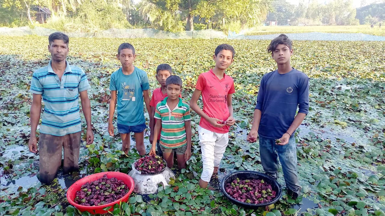 সিংড়ায় পানিফল চাষে আগ্রহ বাড়ছে কৃষকদের