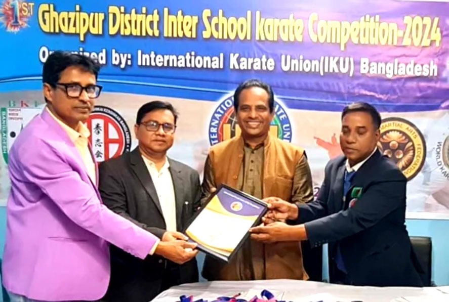 নিজস্ব প্রতিবেদক : ইন্টারন্যাশনাল কারাতে ইউনিয়ন বাংলাদেশ-এর উদ্যোগে গাজীপুর জেলা আন্তঃস্কুল কারাতে প্রতিযোগিতা ২০২৪ সাফল্যের সাথে অনুষ্ঠিত হয়েছে। প্রতিযোগিতাটি শনিবার (২১ ডিসেম্বর) গাজীপুর জেলার টঙ্গী নদী বন্দর এলাকায় সংগঠনের নতুন কার্যালয়ে অনুষ্ঠিত হয়। জেলার বিভিন্ন স্কুলের কারাতে শিক্ষার্থীদের অংশগ্রহণে প্রতিযোগিতাটি এক উৎসবমুখর পরিবেশে সম্পন্ন হয়। প্রতিযোগিতায় কাতা ও কুমিতে বয়সভিত্তিক নানা ইভেন্টে জেলার ২৭টি শিক্ষা প্রতিষ্ঠানের শতাধিক শিক্ষার্থী প্রতিযোগিতা করে। বিভিন্ন দলে বিভক্ত হয়ে শিক্ষার্থীরা নিজেদের দক্ষতা প্রদর্শন করে। প্রতিযোগিতা জুড়ে ছিল আনন্দ উল্লাস এবং প্রতিভা প্রদর্শনের নজির। ফলাফলে হাজী সাইদ ল্যাবরেটরি স্কুল ৬টি স্বর্ণ, ২টি রৌপ্য এবং ৪টি তাম্র পদক পেয়ে চ্যাম্পিয়ন হয়ে প্রতিযোগিতার শ্রেষ্ঠত্ব অর্জন করে। হাজী পেয়ার আলী সরকারি প্রাথমিক বিদ্যালয় ২টি স্বর্ণ, ৪টি রৌপ্য এবং ৪টি তাম্র পদক পেয়ে দ্বিতীয় স্থান দখল করে। আর টঙ্গীর সাহাজ উদ্দিন সরকার স্কুল অ্যান্ড কলেজ ১টি রৌপ্য এবং ১০টি তাম্র পদক অর্জন করে তৃতীয় স্থান অধিকার করে। পুরস্কার বিতরণী অনুষ্ঠানে বিজয়ীদের মাঝে সার্টিফিকেট এবং মেডেল প্রদান করা হয়। উপস্থিত অতিথিরা শিক্ষার্থীদের প্রশংসা করেন এবং তাদের কারাতে দক্ষতা ও কঠোর পরিশ্রমের ভূয়সী প্রশংসা করেন।অনুষ্ঠানে সভাপতিত্ব করেন সংগঠনের কেন্দ্রীয় কমিটির সিনিয়র সহ-সভাপতি সৈয়দ আতিক। অতিথি হিসেবে বক্তব্য রাখেন সেনসি আব্দুল্লাহ আল মামুন, শেকানুল ইসলাম শাহী, সেনসি জামাল উদ্দিন চৌধুরী, সাঈদ মাহমুদ, জসিম উদ্দিন, রনি, এবং জাহিদ হাসান। অতিথিরা শিক্ষার্থীদের আরও উৎসাহিত করার পাশাপাশি ভবিষ্যতে জাতীয় এবং আন্তর্জাতিক পর্যায়ে প্রতিযোগিতায় অংশগ্রহণের জন্য তাদের প্রস্তুত হওয়ার আহ্বান জানান। এই প্রতিযোগিতাটি শিক্ষার্থীদের শারীরিক সুস্থতা এবং মনোবল বৃদ্ধিতে বিশেষ ভূমিকা পালন করেছে। এ ধরনের আয়োজনের মাধ্যমে নতুন প্রজন্ম কারাতে চর্চায় আরও অনুপ্রাণিত হবে বলে আশা করা হচ্ছে।