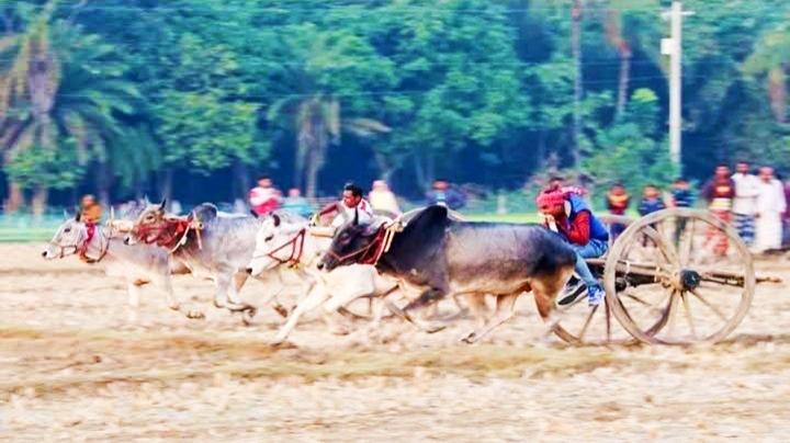 নিজস্ব প্রতিবেদক : কালের বিবর্তনে গ্রাম বাংলা থেকে হারিয়ে যেতে বসেছে ঐতিহ্য গরুর গাড়ি। সেই সাথে হারিয়ে যাচ্ছে গ্রাম বাংলার সেই ঐতিহ্যবাহী গরুর গাড়ির দৌড় প্রতিযোগিতাও। দ্বিতীয় বারের মত শনিবার সকালে গ্রাম বাংলার সেই ঐতিহ্যকে লালন করতেই এবং নতুন প্রজন্মকে জানান দিতে চুয়াডাঙ্গার জীবননগর উপজেলার বাঁকা-ঘোষনগর গ্রামবাসীর আয়োজনে অনুষ্ঠিত হয় গরুর গাড়ির দৌড় প্রতিযোগিতা। গরুর গাড়ির দৌড় প্রতিযোগিতা দখতে জড়ো হয় হাজার হাজার নারী, পুরুষ, শিশু সহ সব বয়সের দর্শনার্থীরা । গরুর গাড়ীর দৌড় প্রতিযোগিতাকে ঘিরে এলাকায় মানুষের মধ্যে এক ধরণের সাজ সাজ রব আর উৎসবের আমেজ সৃষ্টি হয়। গরুর গাড়ীর প্রতিযোগিতাটি এলাকায় আনন্দ মেলায় রুপ নেয়। রাস্তার দু’ধারে ও আশেপাশের স্টলগুলোতে বিভিন্ন প্রকার খাদ্য সামগ্রীর সাজানো স্টল গুলো বেশ দৃষ্টি নন্দন রূপে সাজিয়ে বসেছিল। স্টলগুলোর কারণে খেলায় বাড়তি আকর্ষণ সৃষ্টি করে। দ্বিতীয়বারের মত অনুষ্ঠিত এ প্রতিযোগিতায় আশেপাশের জেলা থেকে ৫০টি গরুর গাড়ি প্রতিযোগিতায় অংশ নেয়। শনিবার সকাল থেকে এ খেলা সন্ধ্যা পর্যন্ত চলতে থাকে। খেলা শুরুর আগে থেকে হাজার হাজার দর্শক মাঠে জড়ো হয়। এলাকার রাস্তাগুলোতে নারী-পুরুষ ও শিশুদের ছিল উপচে পড়া ভিড়। এ প্রতিযোগিতাকে ঘিরে এলাকায় মেয়ে-জামাই ও দুর-দুরান্তের আত্মীয়-স্বজনেরা এক-দু’দিন আগেই চলে আসায় এলাকায় যেন ঈদের উৎসবের আমেজ সৃষ্টি হয়। প্রতিযোগিতায় প্রথম স্থান অধিকারী গাড়িওয়ালাকে প্রথম পুরস্কার হিসেবে একটি খাসি ছাগল এবং দ্বিতীয় স্থান অধিকারী গাড়িওয়ালাকে একটি বাইসাইকেল পুরস্কার দেয়া হয়। খেলাটি উদ্বোধন করেন, জীবননগর উপজেলা বিএনপির সভাপতি আনোয়ার হোসেন খান খোকন, সহ-সভাপতি লে.কর্ণেল (অব.) গোলাম মঞ্জুর সিদ্দিকী মিলন ও সাধারন সম্পাদক শাহজান আলী। এ সময় উপস্থিত ছিলেন, উপজেলা বিএনপির সাংগাঠনিক সম্পাদক আলতাব হোসেন, বাঁকা ইউনিয়ন বিএনপির সভাপতি আব্দুল খালেক, সহ-সভাপতি খাদিমুল হক খোকন ও সাধারন সম্পাদক আবুল বাসার, উপজেলা কৃষদলের আহবায়ক আব্দুল হামিদ, সদস্য সচিব সানোয়ার হোসেন, জেলা যুবদলের সদস্য ও পৌর যুবদলের সভাপতি পদ প্রত্যাশী ইউনুস আলী। এছাড়াও উপস্থিত ছিলেন, বিশিষ্ট ব্যবসায়ী আব্দুল হামিদ, বিএনপি নেতা সুমন হোসেন, শাহিন, স্বেচ্ছাসেবক দল নেতা আনোয়ার হোসেনসহ এলাকার গণ্যমান্য ব্যক্তিবর্গ।