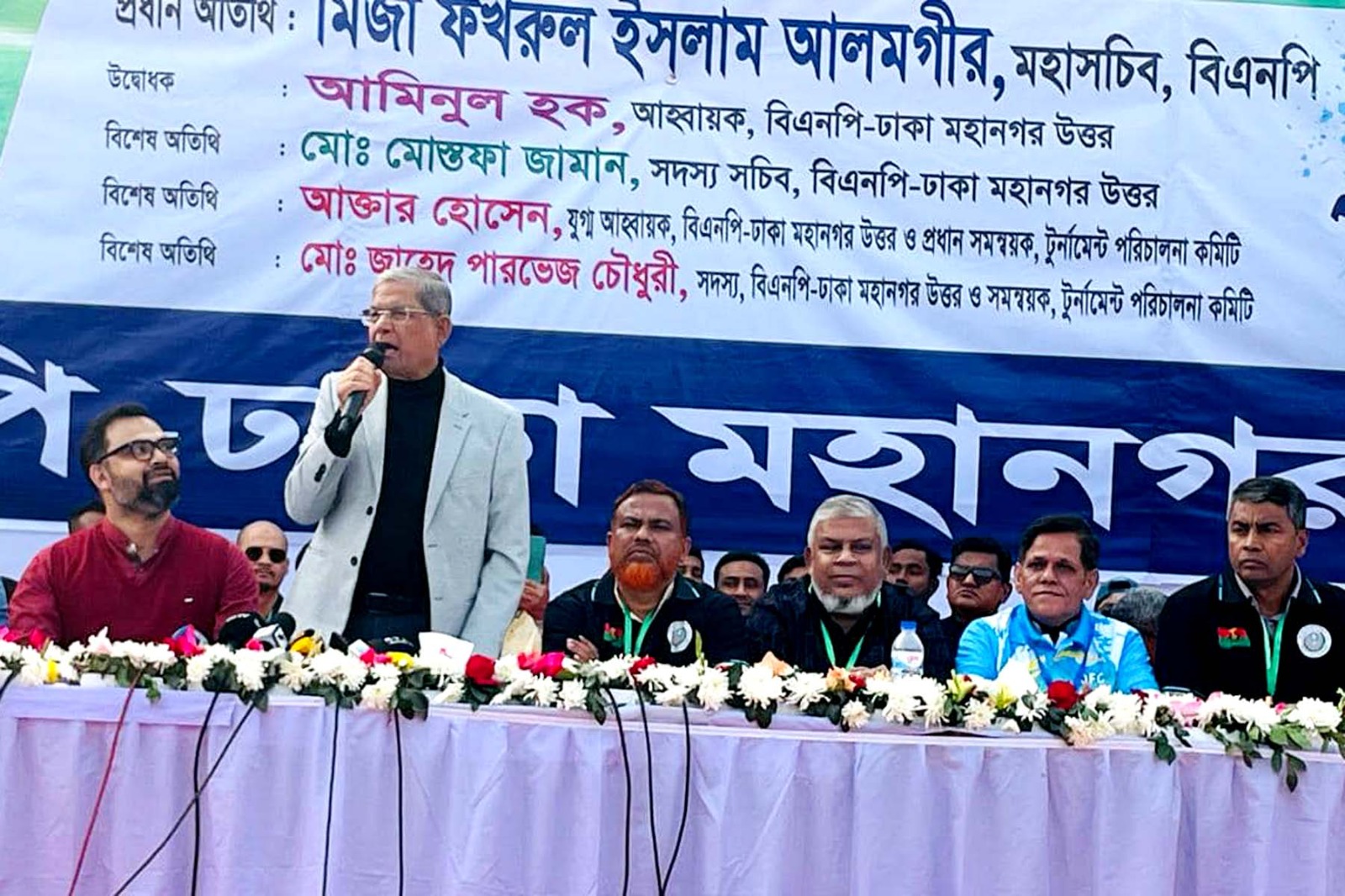 নিজস্ব প্রতিবেদক : বিএনপির মহাসচিব মির্জা ফখরুল ইসলাম আলমগীর বলেছেন আওয়ামী লীগ সরকার ক্রীড়াঙ্গনকেও দলীয়করণ করে ফেলেছিল, দীর্ঘ ১৫ বছর আওয়ামী লীগ সরকার ফ্যাসিস্ট কায়দা রাষ্ট্র পরিচালনা করে সব প্রতিষ্ঠানকে ধ্বংস করে ফেলেছে। এই ক্রীড়াঙ্গন তার বড় উদাহরণ। এর আগে, এই ক্রীড়াঙ্গন কোনো দিন দলীয়করণ করা হয়নি। কিন্তু তারা দলীয়করণ করেছে। যার ফলে ট্যালেন্টেড খেলোয়াড় জাতীয় দলে খেলার সুযোগ পায় নাই। ঢাকা মহানগর উত্তর বিএনপি আয়োজিত জিয়া আন্তঃথানা ফুটবল টুর্নামেন্ট ২০২৫ এর উদ্বোধনী অনুষ্ঠানে শুক্রবার (১০ জানুয়ারি) বিকেলে মিরপুর সিটিক্লাব মাঠে প্রধান অতিথি হিসেবে তিনি এসব কথা বলেছিলেন। তিনি আরও বলেন আজকে আমাদের যে নতুন যাত্রা শুরু হয়েছে, এই যাত্রায় আমাদের সবচেয়ে বেশি দরকার অরাজনৈতিক ঐক্য এবং মেধার চর্চা। এখানে সুযোগ যেন সবাই পায় এবং সেই সুযোগ কাজে লাগিয়ে যেন ভালো খেলোয়াড় তৈরি হয়। তিনি বলেন একটা রাজনৈতিক দল ফুটবল টুর্নামেন্টের আয়োজন করছে, এটা আগে আমরা কখনো দেখি নাই। এটা আধুনিক রাজনীতিতে একটা আধুনিক চিন্তা। সেই চিন্তা আমাদের দলের ভারপ্রাপ্ত চেয়ারম্যান তারেক রহমানের। তাকে আমরা ধন্যবাদ ও কৃতজ্ঞতা জানাচ্ছি। তিনি বলেন, ‘আমাদের তরুণরা, যুবকেরা ক্রিকেটের খুব ভক্ত। কিন্তু একটা সময় ছিল যখন ফুটবল ছিল সবচেয়ে জনপ্রিয় খেলা। আমাদের সৌভাগ্য আজকে ঢাকা মহানগর উত্তর বিএনপির যিনি সভাপতির দায়িত্ব পালন করছেন, তিনি একজন জাতীয় ফুটবলার। জাতীয় দলের খেলোয়াড়। তিনি যে রাজনীতিতে এসছেন, এতে রাজনীতি সমৃদ্ধ হবে। মির্জা ফখরুল বলেন, আমাদের দলের সঙ্গে ক্রীড়াঙ্গের একটা নিবিড় সম্পর্ক রয়েছে। তারেক রহমানের ছোট ভাই আরাফাত রহমান কোকো ক্রিকেট বোর্ডের সঙ্গে যুক্ত ছিলেন। আজকে ক্রিকেটের যে উৎকর্ষ সাধন হয়েছে, সেখানে আরাফাত রহমানের গুরুত্বপূর্ণ ভূমিকা রয়েছে। টুর্নামেন্টের উদ্বোধক হিসেবে উপস্থিত ছিলেন ঢাকা মহানগর উত্তর বিএনপির আহবায়ক আমিনুল হক। বিশেষ অতিথি হিসেবে উপস্থিত ছিলেন মহানগর উত্তর বিএনপির সদস্য সচিব মোস্তফা জামান এবং যুগ্ম আহবায়ক আখতার হোসেন,এস এম জাহাঙ্গীর হোসেন,মোস্তাফিজুর রহমান সেগুন,আফাজ উদ্দিন আফাজ,এ বি এম এ রাজ্জাক,ফেরদৌসী জামান মিষ্টি,সদস্য বিএনপি ঢাকা মহানগর উত্তর এর সদস্য ও সমন্বয় টুর্নামেন্ট পরিচালনা কমিটি সদস্য শাহেদ পারভেজ চৌধুরী প্রমুখ । সংক্ষিপ্ত আলোচনা শেষে বেলুন উড়ানো এবং শান্তির প্রতীক পায়রা ছেড়ে দিয়ে জিয়া আন্তঃথানা ফুটবল টুর্নামেন্ট ২০২৫ এর শুভ উদ্বোধন ঘোষণা করা হয়। উদ্বোধনী আনুষ্ঠানিকতার পর শুরু হয় টুর্নামেন্টের প্রথম ম্যাচ, যেখানে পল্লবী থানা এবং দক্ষিণ খান থানার দল মুখোমুখি হয়। উভয় দলের প