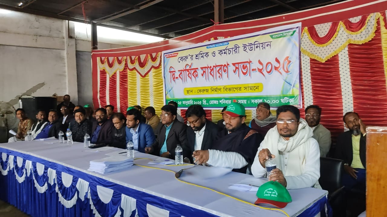 নিজস্ব প্রতিবেদক : স্মরণকালের রেকর্ড ভাংলো কেরুজ শ্রমিক-কর্মচারি ইউনিয়ন নির্বাচনের এবারের সাধারণসভায়। চলমান পরিস্থিতিতে পুলিশি অনুমোদন পেতে বেশ বেক পেতে হয়েছে নেতৃবৃন্দদের। কেরুজ ব্যবস্থাপনা পরিচালকের সাথে দীর্ঘ বৈঠক শেষে রাত দুটোর দিকে ৬ জন সভাপতি/সাধারণ সম্পাদক প্রার্থী দর্শনা থানা পুলিশকে লিখিত মুছলেখা দিয়ে পেলেন সভার অনুমতি। অবশেষে কাংখিত সাধারণসভা শান্ত পরিবেশে হলেও কোন প্রকার হৈ হট্রগোল ছাড়ায় সভ্যতার মাধ্যমে একে ওপরকে কথার তীরে ধবল ধোলাই করেছেন। এবারের সাধারণসভা দীর্ঘ হয়নি, হয়নি রাত গভীরও। পুলিশের দেয়া সময় শনিবার সকাল ১০ টা থেকে দুপুর দুটো পর্যন্ত থাকলেও সংগঠনগুলো থেকে র্যালি প্রদর্শন করে বের হতে হতে সভাস্থলে পৌছুতে সময় লেগেছে দুপুর ১২ টা। ফলে ওই সময় কেরুজ জামে মসজিদের পেশ ইমাম মাও শামসুজ্জোহা কোরআন তেলোয়াতের মাধ্যমে শুরু হয় আলোচনাপর্ব। সময় সংক্ষিপ্ততার কারণে নাম ও পদের জানান দিয়ে ভোট প্রার্থনা করেন সহ-সভাপতি, যুগ্নসম্পাদক, সাংগঠনিক সম্পাদক, ক্যাশিয়ার, দপ্তর সম্পাদক ও সদস্য পদপ্রার্থীরা। স্বাগত বক্তব্য সহ দ্বি-বার্ষিক প্রতিবেদন পাঠ করেন, ইউনিয়নের বর্তমান সাধারণ সম্পাদক হাফিজুর রহমান হাফিজ। সভাপতিত্ব করেন, বর্তমান পরিষদের সভাপতি ফিরোজ আহমেদ সবুজ। প্রধান অতিথি ছিলেন, কুষ্টিয়া শ্রম অধিদপ্তরের পরিচালক তৈফিক হোসেন। আলোচনা করেন কেরুজ শ্রমিক-কর্মচারি ইউনিয়নের সাবেক সভাপতি তৈয়ব আলী, সাবেক সাধারণ সম্পাদক মনিরুল ইসলাম প্রিন্স, সাধারণ সম্পাদক প্রার্থী সৌমিক হাসান রূপম ও জয়নাল আবেদীন নফর। আরো বক্তব্য দেন, সহ-সভাপতি মফিজুল ইসলাম, রেজাউল ইসলাম, একই এসএম কবির, পদপ্রার্থী সাংবাদিক ইয়াসির আরাফাত মিলন, বর্তমান যুগ্নসাধারণ সম্পাদক মোস্তাফিজুর রহমান, এ পদপ্রার্থী সাবেক যুগ্নসম্পাদক খবির উদ্দিন, বাবুল আক্তার, ইসমাইল হোসেন, আব্দুল কুদ্দুস, সাংগঠনিক সম্পাদক পদপ্রার্থী ইকবাল হোসেন ও মহিদুল ইসলাম। অর্থ সম্পাদক (কোষাধ্যক্ষ) আবু সাঈদ, রেজানুর রহমান, দপ্তর সম্পাদক সালাউদ্দিন সনেট, প্রচার সম্পাদক প্রার্থী রবিউল ইসলাম সুমন, মিজানুর রহমান, ইউনিয়নের যুগ্ন সম্পাদক মোস্তাফিজুর রহমান ও অফিস সহকারী আশরাফুল আলমের উপস্থাপনায় অন্যান্যের মধ্যে বক্তব্য দেন, সদস্য প্রার্থী হারেজুল ইসলাম, সাহেব আলী শিকদার, সাইফুদ্দিন সুমন, মাইদুদ্দিন,আবু সিদ্দিক, আমিনুল ইসলাম, বাবর আলী, আব্বাস আলী, নুর ইসলাম, আজাদ হোসেন, মজিবর রহমান প্রমুখ। সভাপতির বক্তব্যের ফিরোজ আহমেদ সবুজ নির্বাচনের দিন পরিবর্তন ঘোষনা করেন। ১৮ জানুয়ারি অনুষ্ঠিত বর্তমান পরিষদের বৈঠকে সিদ্ধান্ত নেয়া হয় ৮ ফেব্রুয়ারি ভোট গ্রহনের। সে সিদ্ধান্ত পরিবর্তন করে সাধারণ