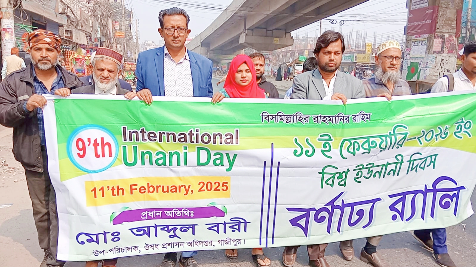 নিজস্ব প্রতিবেদক : বাংলাদেশ ইউনানী ডক্টর'স সোসাইটি গাজীপুর শাখার উদ্যোগে আন্তর্জাতিক ৯ম বিশ্ব ইউনানী দিবস উদযাপন উপলক্ষে বর্ণাঢ্য র্যালী ও আলোচনাসভার আয়োজন করেছে। ১১ই ফেব্রুয়ারী মঙ্গলবার সকালে টঙ্গী চেরাগআলী ঔষধ প্রশাসন অধিদপ্তরের সামনে থেকে র্যালীটি বের হয়ে ঢাকা ময়মনসিংহ মহাসড়ক প্রদক্ষিন করে টঙ্গী কলেজ গেইট এলাকায় আলোচনার মাধ্যমে শেষ হয়। অনুষ্ঠানে প্রধান অতিথি হিসেবে উপস্থিত ছিলেন জেলার ড্রাগ সুপার ডাঃ তানজিনা আফরিন,সংগঠনের সভাপতি হাকীম মোঃ আবুল কাশেম আজাদ, ডাঃ আঞ্জুম ফছিউদ্দিন সরকার, টঙ্গী প্রেসক্লাবের সাধারণ সম্পাদক মোঃ কালিমুল্লাহ ইকবাল সহ সংগঠনের জেলা ও থানার নেতৃবৃন্দরা । বক্তৃারা এ দিবসের সরকারী বিভিন্ন ভুমিকা ইউনানী ডাক্টারদের সরকারি ও বেসরকারি পর্যায়ে দ্রত কর্মসংস্থান সৃষ্টি ও সুযোগ সুবিধা বৃদ্ধির আহ্বান জানান। এসময় আরো বলেন এই দিনে সকলেই শপথ গ্রহণ করি, সকল ইউনানী আয়ুর্বেদিক চিকিৎসক একত্র হয়ে, সকল ভেদাভেদ ভুলে স্বাস্থ্যসেবার উন্নয়নের জন্য কাজ করি এবং এই সেক্টরকে এগিয়ে নিয়ে যায় । সেই সাথে নিম্নক্ত দাবিগুলো তুলে ধরেন।