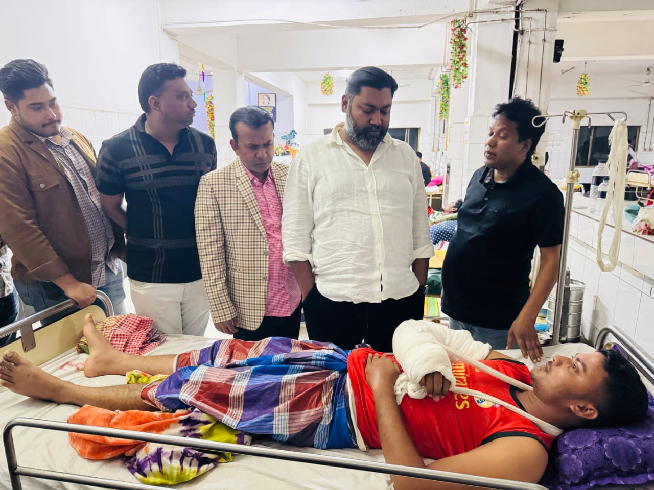 গুলিবিদ্ধ সাধারণ ছাত্রকে দেখতে হাসপাতালে এম মঞ্জুরুল করিম রনি