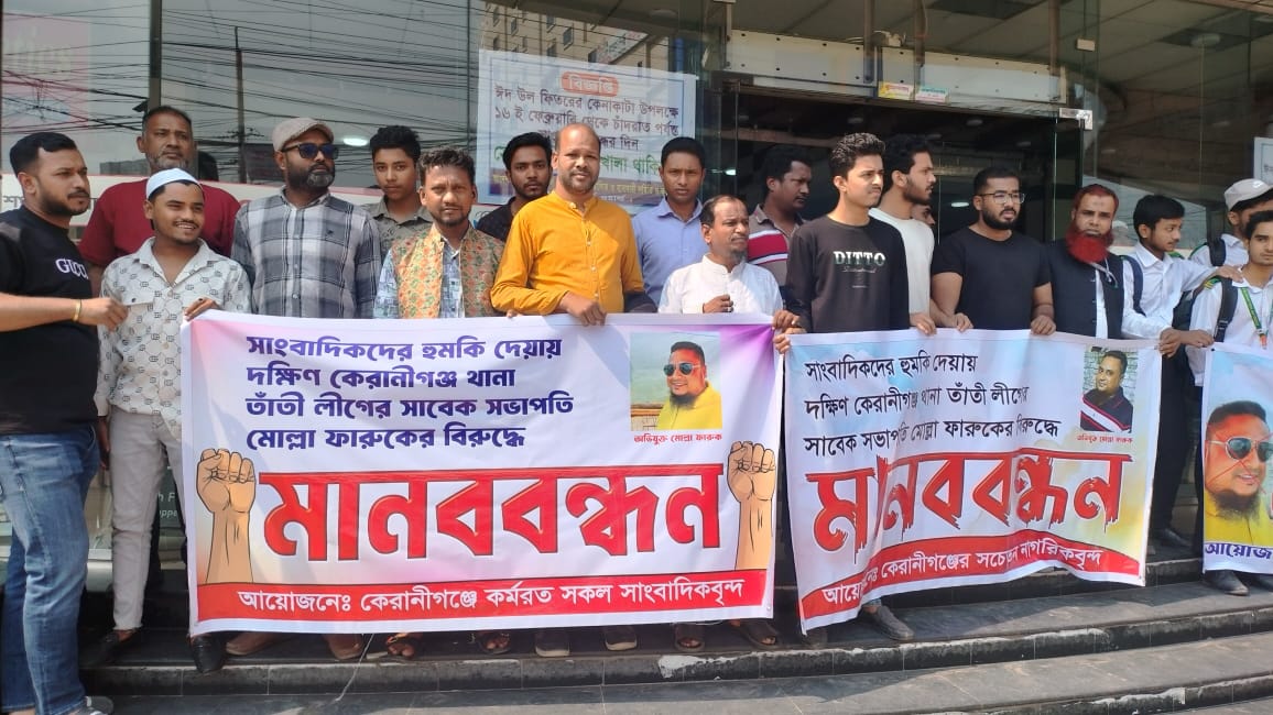 কেরানীগঞ্জে সাংবাদিকদের হুমকির প্রতিবাদে মানববন্ধন