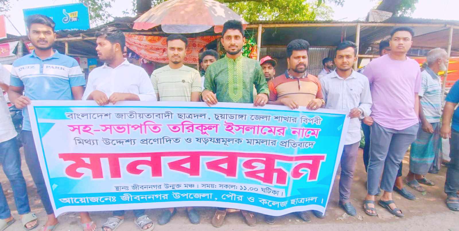 ছাত্রদল নেতার হয়রানিমূলক হত্যা মামলা প্রত্যাহারের দাবিতে জীবননগরে মানববন্ধন