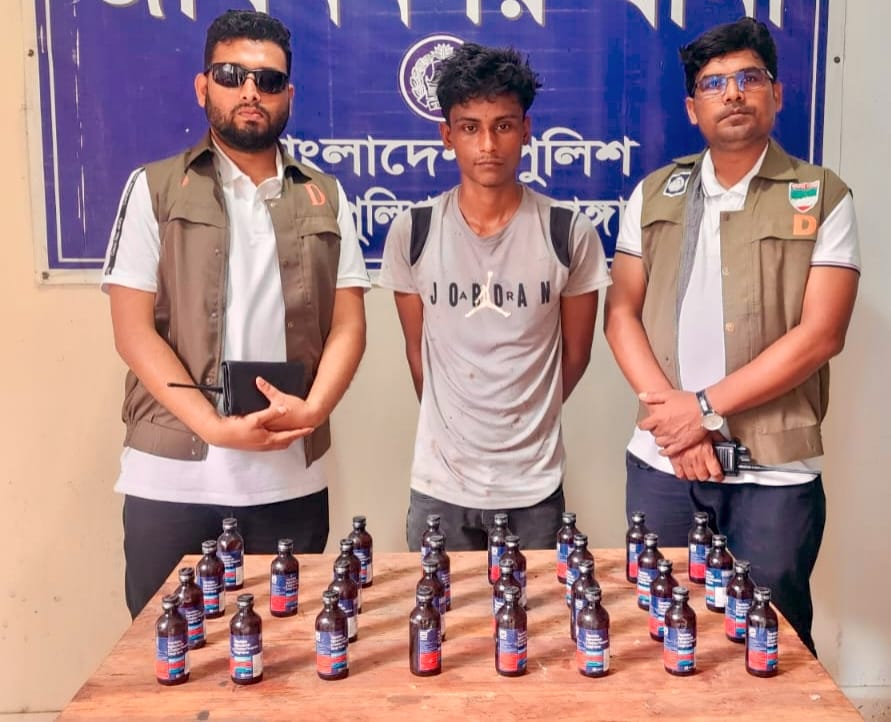 নিজস্ব প্রতিবেদক : চুয়াডাঙ্গা জেলা গোয়েন্দা শাখা (ডিবি) পুলিশ মাদক বিরোধী অভিযান চালিয়ে ৩০ বোতল ফেন্সিডিল সহ এক মাদক কারবারিকে আটক করেছে। শনিবার (১২ এপ্রিল) বেলা ৩ টার দিকে চুয়াডাঙ্গা জীবননগর গয়েশপুর গ্রামাস্থ জনৈক সিরাজ এর জমির সামনে পাকা রাস্তার উপর থেকে তাকে আটক করা হয়। সূত্রে জানাগেছে, চুয়াডাঙ্গা পুলিশ সুপার খন্দকার গোলাম মওলা, বিপিএম-সেবা'র সার্বিক দিকনির্দেশনায় জেলা পুলিশের সকল ইউনিটে একযোগে মাদক ও চোরাচালান বিরোধী অভিযান পরিচালিত হচ্ছে। তারই ধারাবাহিকতায় জেলা গোয়েন্দা শাখা (ডিবি) কর্তৃক মাদক বিরোধী বিশেষ অভিযানে মোঃ তোরগুল হাসান সোহাগ, এএসআই (নিঃ) আবু আল ইমরান, এএসআই(নিঃ) আরিফুল ইসলাম জেলা গোয়েন্দা শাখা, চুয়াডাঙ্গা সঙ্গীয় ফোর্স ১২ এপ্রিল বেলা ৩ টার দিকে চুয়াডাঙ্গা জীবননগর উপজেলার গয়েশপুর গ্রামাস্থ জনৈক সিরাজ এর জমির সামনে পাকা রাস্তার উপর মাদক বিরোধী অভিযান পরিচালনা করেন। এসময় আটক করা হয় গয়েশপুর গ্রামের বিল্লাল আলীর ছেলে মোঃ ইমরান আলী(২৩)কে। তার কাছ থেকে উদ্ধার করা হয় ৩০(ত্রিশ) বোতল ফেন্সিডিল। গ্রেফতারকৃত আসামীর বিরুদ্ধে জীবননগর থানায় নিয়মিত মামলা রুজু করা হয়।