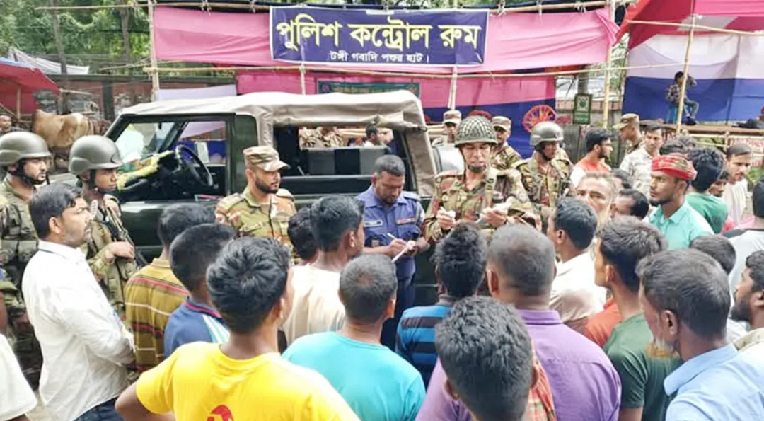 বুধবার (৪ জুন) সকালে টঙ্গী পূর্ব থানা হকের মোড় রোডের কোরবানির হাটে সেনাবাহিনী অভিযান চালিয়ে তাদের আটক করে। পরে তাদের টঙ্গী পূর্ব থানায় হস্তান্তর করা হয়। গ্রেপ্তারকৃত তিনজন হলেন- টঙ্গী পূর্ব থানা বিএনপির সহ-সাংগঠনিক সম্পাদক মিরাজ মিয়া (৩৬), বনমালা দত্তপাড়া এলাকার মো. জাকারিয়া (৪৭) এবং এরশাদনগর ৬ নম্বর ব্লকের বাসিন্দা মো. শিপন (৩৩)। জানা গেছে, টঙ্গীর কোরবানির হাটে গত কয়েকদিন ধরেই রাতে বিভিন্ন খামারির গরুবাহী ট্রাক জোরপূর্বক বাজারে প্রবেশ করানো হচ্ছিল। খামারিরা অন্য হাটে গরু নিয়ে যেতে চাইলে তাদের বাধা দেওয়া হয় এবং প্রতিবাদ করলে ভয়ভীতি দেখানো ছাড়াও শারীরিকভাবে লাঞ্ছিত করা হয়। সেনাবাহিনীর কাছে অভিযোগকারী ভুক্তভোগী এক খামারি কান্নাজড়িত কণ্ঠে বলেন, এই হাটে কোনো ব্যবস্থা নাই। পানি নাই, টয়লেট ব্যবহার করা যায় না, বিশ্রামের জায়গা নাই, ক্রেতাও নাই। তাই অন্য হাটে যেতে চাইলে তারা আমাদের গরু নামাতে দেয়নি, মারধর করেছে। এ বিষয়ে হাটের ইজারাদার সরকার জাবেদ আহমেদ সরকার সুমন বলেন, ঘটনার কথা শুনেছি। তদন্ত করে দায়ীদের বিরুদ্ধে ব্যবস্থা নেওয়া হবে। টঙ্গী পূর্ব থানার ভারপ্রাপ্ত কর্মকর্তা (ওসি) ফরিদুল ইসলাম জানান, সেনাবাহিনীর একটি দল তিনজনকে আটক করে আমাদের কাছে হস্তান্তর করেছে। তাদের বিরুদ্ধে আইনগত ব্যবস্থা প্রক্রিয়াধীন রয়েছে। পশুর হাটে এ ধরনের সন্ত্রাসী আচরণে ক্ষোভ প্রকাশ করেছেন খামারিরা। তারা নিরাপত্তা ও হাট ব্যবস্থাপনায় স্বচ্ছতা নিশ্চিতের দাবি জানিয়েছেন। স্থানীয় প্রশাসন বলেছে, যাতে হাট ব্যবস্থাপনায় কোনো ধরনের বিশৃঙ্খলা না ঘটে, সেজন্য নজরদারি আরও বাড়ানো হবে।