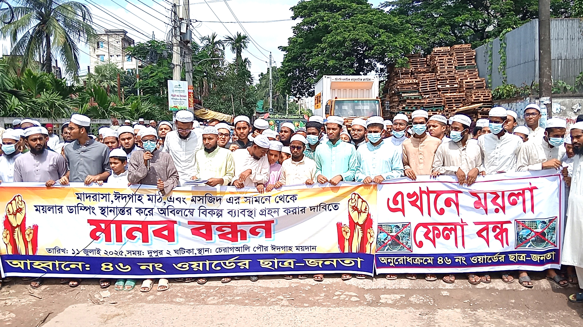 টঙ্গীতে মাদ্রাসার পাশে থেকে ডাস্টবিন সরিয়ে নেওয়ার দাবিতে মানববন্ধন