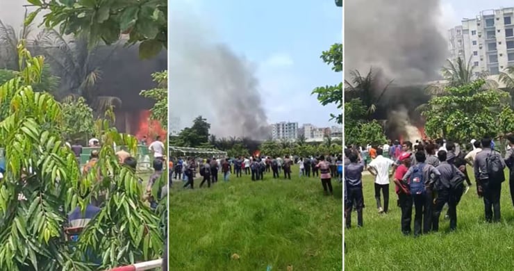 নিজস্ব প্রতিবেদক : রাজধানীর উত্তরায় একটি প্রশিক্ষণ বিমান বিধ্বস্ত হয়েছে। সোমবার (২১ জুলাই) দুপুর ১টার কিছু পরে উত্তরার মাইলস্টোন স্কুল অ্যান্ড কলেজ ক্যাম্পাসে এটি বিধ্বস্ত হয়। বিধ্বস্ত বিমানটি বিমান বাহিনীর এফ-৭ বিজিআই প্রশিক্ষণ বিমান। এ ঘটনায় মাইলস্টোন স্কুলের শিক্ষার্থী ও অভিভাবকরা আতঙ্কিত হয়ে পড়েছেন। আহতদের উদ্ধার করে হাসপাতালে নেওয়া হচ্ছে। জানা গেছে, ঘটনার সময় মাইলস্টোন স্কুল ও কলেজে শ্রেণি কার্যক্রম চলছিল। হঠাৎ বিকট শব্দে বিমানটি ভেঙে পড়লে শিক্ষার্থী ও স্থানীয়দের মধ্যে আতঙ্ক দেখা দেয়। স্কুলছাত্রের অভিভাবকরা খবর পেয়ে ছুটে আসেন সন্তানদের খোঁজ নিতে। অনেকেই উদ্বিগ্ন হয়ে পড়েন। আন্তঃবাহিনী জনসংযোগ পরিদপ্তর (আইএসপিআর) এক বিবৃতিতে জানায়, বিমানটি দুপুর ১টা ৬ মিনিটে উড্ডয়ন করেছিল। উড্ডয়নের কিছুক্ষণের মধ্যেই এটি দুর্ঘটনার কবলে পড়ে। এদিকে, সামাজিক যোগাযোগমাধ্যমে এই দুর্ঘটনার একটি ভিডিও ছড়িয়ে পড়েছে। ভিডিওতে একটি প্রশিক্ষণ বিমানকে নিচে পড়ে যেতে দেখা যায়, তবে ভিডিওটির সত্যতা এখনো নিশ্চিত করা সম্ভব হয়নি। ঢাকা মহানগর পুলিশের উত্তরা বিভাগের উপ-পুলিশ কমিশনার মহিদুল ইসলাম বলেন, খবর পেয়েছি মাইলস্টোন কলেজ এলাকায় একটি প্রশিক্ষণ বিমান বিধ্বস্ত হয়েছে। ঘটনাস্থলে যাচ্ছি, বিস্তারিত জানার চেষ্টা করছি। এদিকে, ফায়ার সার্ভিস ও সিভিল ডিফেন্স জানায়, ঘটনাস্থলে তাদের ৮টি ইউনিট কাজ করছে। আরও দুটি ইউনিট রওনা হয়েছে। স্থানীয় সূত্র জানিয়েছে, বিধ্বস্ত হওয়ার পর ঘটনাস্থলে দ্রুত উদ্ধার অভিযান শুরু হয়। কয়েকজন আহত ব্যক্তিকে স্থানীয় হাসপাতাল ও ক্লিনিকে নিয়ে যাওয়া হয়েছে। ঘটনাস্থলে আইনশৃঙ্খলা রক্ষাকারী বাহিনী মোতায়েন রয়েছে। বিমানটি বিধ্বস্ত হওয়ার সুনির্দিষ্ট কারণ এখনো জানা যায়নি। এ প্রতিবেদন লেখা পর্যন্ত উদ্ধার তৎপরতা চলমান। দুর্ঘটনায় একজন মারা গেছে বলে নিশ্চিত করেছে কর্তৃপক্ষ।
