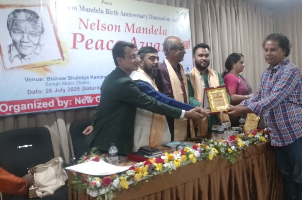 নিজস্ব প্রতিবেদক : বিশ্বের শান্তির দুত বর্ণ ও বৈষম্য বিরোধী অবিসংবাদিত নেতা নেলসেন ম্যান্ডেলা শান্তি পুরস্কারে ভুষিত হলেন বাংলাদেশ টেলিভিশনের লোকসংগীত শিল্পী চুয়াডাঙ্গার কৃতি সন্তান মনিরুজ্জামান ধীরু বাউল। শনিবার (২৬ জুলাই) বিকেল ৪টা থেকে সন্ধ্যা ১০টা পর্যন্ত বিশ্ব সাহিত্য কেন্দ্র, বাংলা মটর, ঢাকায় জমকালো এক অনুষ্ঠানের মাধ্যমে পুরস্কার ও সার্টিফিকেট তুলে দেয়া হয়,বিভিন্ন শ্রেণি পেশায় বিশেষ অবদান রাখায় উক্ত অনুষ্ঠানে বাংলাদেশ এর ১৫জন গুনিজনকে মনোনীত করেন নেলসন ম্যান্ডেলা ফাউন্ডেশন সাউথ আফ্রিকা! সংবর্ধিত গুনি মানুষকে পুরস্কার প্রদান করা হয়। অনুষ্ঠানের প্রধান অতিথি হিসেবে উপস্থিত ছিলেন শক্তিমান অভিনেতা খলিলুর রহমান, গোল্ড মেডেলিষ্ট কবি পুষপেন রায়, নিউ জেনারেশনের চেয়ারম্যান ও মহাপরিচালক রাকিব আলী সহ এসময় অনেকে পুরস্কার গ্রহণ করে নেলসন ম্যান্ডেলা শান্তি পুরস্কার ২০২৫ পাওয়াই অনেকে সোশ্যাল মিডিয়ায় শুভেচ্ছা এবং অভিনন্দন জানিয়েছেন। জমকালো আয়োজনে উপস্থিত সাংবাদিক, লেখক, সংগঠক, সমাজ সেবক, নারী উদ্দোক্তা সহ গুনি ব্যাক্তিবর্গের এই অনুষ্ঠানে সঞ্চালনায় ছিলেন মোছাম্মত মিথিলা (চ্যানেল আই) মডিয়া পার্টনার এ টি এন বাংলা ও মাই টিভি, অনুষ্ঠান অরগানাইজেশানের দায়িত্বে ছিলেন নিউ জেনারেশন ফোরাম বাংলাদেশ। স্পনসর করেছে: নেলসন ম্যান্ডেলা ফাউন্ডেশন সাউথ আফ্রিকা।