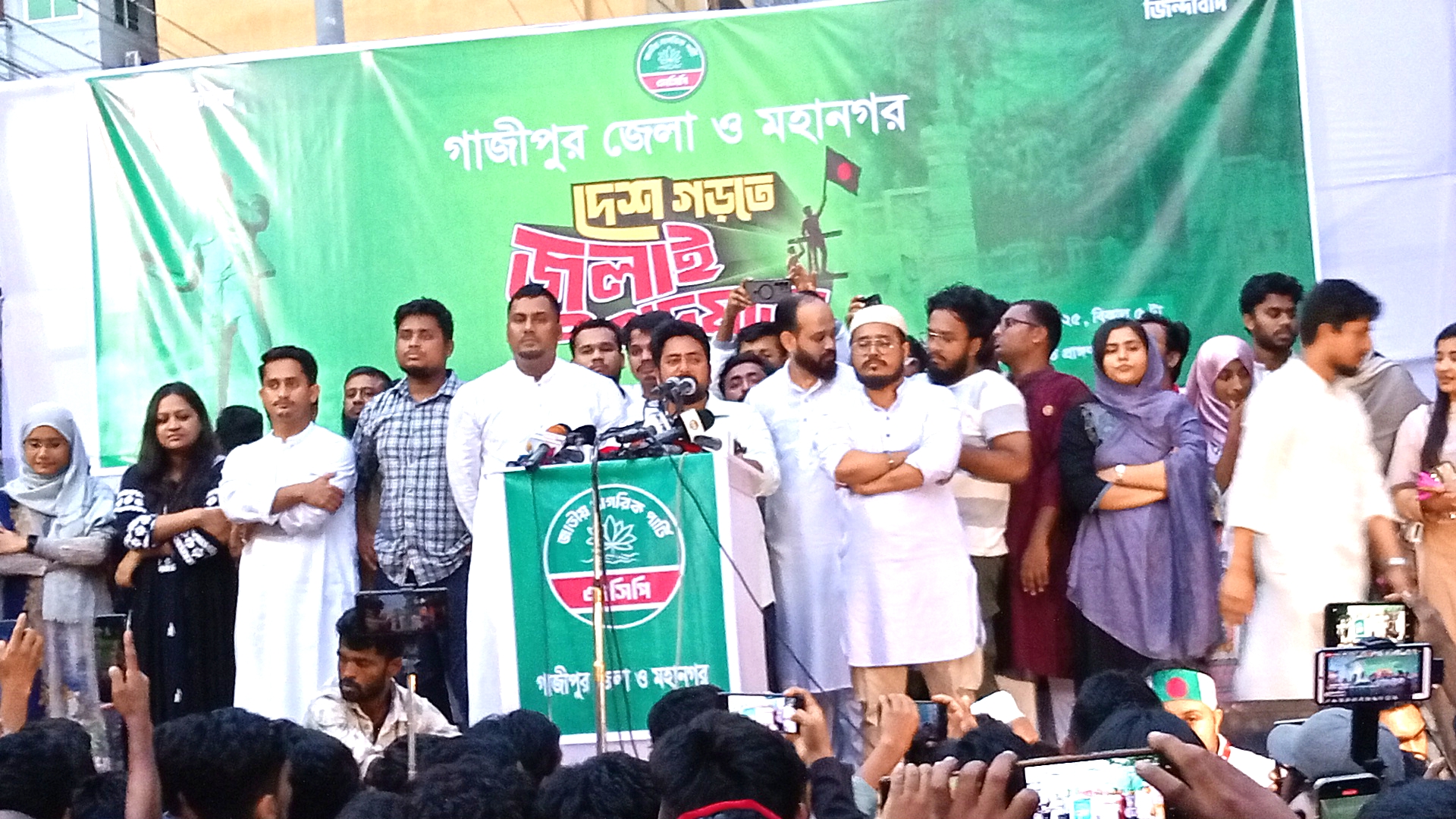 নিজস্ব প্রতিবেদক : আগামী পাঁচ আগস্টের মধ্যে জুলাই সনদ ও জুলাই ঘোষণাপত্র হতেই হবে-এটাই আমাদের স্পষ্ট বার্তা। এর কোনও বিকল্প চলবে না। গাজীপুর মহানগরের ঐতিহাসিক ভাওয়াল রাজবাড়ী সড়কে মঙ্গলবার (২৯ জুলাই) বিকেলে অনুষ্ঠিত পূর্ব ঘোষিত জুলাই পদযাত্রা ২৯ তম দিনের এক পথসভায় এসব কথা বলেন জাতীয় নাগরিক পার্টির (এনসিপি) আহ্বায়ক নাহিদ ইসলাম। জুলাই গণঅভ্যুত্থান-উদ্বুদ্ধ দেশ গড়তে জুলাই পদযাত্রা কর্মসূচির অংশ হিসেবে আয়োজিত পথসভায় নাহিদ ইসলাম বলেন, সরকার সম্প্রতি জুলাই সনদের খসড়া প্রকাশ করেছে, কিন্তু খসড়া নয়-আমরা বাস্তবায়ন দেখতে চাই। শুধু সংস্কার বললেই চলবে না, কিভাবে তা কার্যকর হবে সেই প্রশ্নে জাতীয় ঐক্যমত গড়ে তুলতে হবে। তিনি অভিযোগ করেন, ৯০-এর গণঅভ্যুত্থানের পরেও রাজনৈতিক দলগুলো জনগণের সঙ্গে প্রতারণা করেছিল। তখনও নির্বাচনের রূপরেখা তৈরি হয়েছিল, কিন্তু কোনো দল তা মানেনি। এবার আমরা আর প্রতারণার সুযোগ দিতে চাই না। এই নির্বাচন হবে জুলাই সনদকে ভিত্তি করে এবং নির্বাচিত সরকার সেই সনদ বাস্তবায়নে বাধ্য থাকবে। গোপালগঞ্জ থেকে গাজীপুর, দেশের ৬৪টি জেলায় এনসিপির পদচারণা তুলে ধরে তিনি বলেন, আমরা গোপালগঞ্জে গিয়েছি, কেউ থামাতে পারেনি। আজ গাজীপুরেও এসেছি। দেশের প্রতিটি ইঞ্চি মাটিতে আমরা যাবো, মুজিববাদ বিতাড়িত করবো। মুজিববাদীদের বিচারের আওতায় আনতে হবে। পদযাত্রায় আরও বক্তব্য দেন এনসিপি'র দক্ষিণ অঞ্চলের মুখ্য সংগঠক হাসনাত আব্দুল্লাহ, এনসিপির উত্তরাঞ্চলের মুখ্য সংগঠক সারজিস আলমের সঞ্চালনায় আরো বক্তব্য রাখেন কেন্দ্রীয় যুগ্ন আহবায়ক নাহিদ আহসান নিভা, উত্তর অঞ্চলের যুগ্ম মুখ্য সংগঠক অ্যাডভোকেট আলী নাসের খান, অবসরপ্রাপ্ত মেজর আব্দুল্লাহ আল মাহমুদ, এম এম সোহান, আব্দুল্লাহ আল মুহিন, আসাদুজ্জামান দিপু, শ্রমিক নেতা আরমান হোসাইন, সাগর ইসলাম হৃদয়, রাজিব মাহমুদ প্রমুখ। এছাড়াও উপস্থিত ছিলেন এনসিপির উত্তর অঞ্চলের সংগঠক এফ এম শুয়াইব, সিনিয়র যুগ্ন সদস্য সচিব ডাক্তার তাসনিম যারা, জ্যেষ্ঠ যুগ্ন আহ্বায়ক সামান্তা শারমিন প্রমুখ। বৈরী আবহাওয়া উপেক্ষা করে বিপুল সংখ্যক মানুষের অংশগ্রহণে সমাবেশটি গণজাগরণের রূপ নেয়। পদযাত্রা ঘিরে শুরুতে কিছুটা নিরাপত্তা উদ্বেগ থাকলেও পুলিশ ও গোয়েন্দা সংস্থার সরব উপস্থিতিতে কর্মসূচিটি শান্তিপূর্ণভাবেই সম্পন্ন হয়। কালিয়াকৈর থেকে মাওনা হয়ে নেতারা জয়দেবপুর রাজবাড়ী পর্যন্ত জুলাই পদযাত্রায় অংশ নেন এবং বিকাল ৫টার পর চূড়ান্ত সমাবেশে বক্তব্য রাখেন। নাহিদ ইসলাম তাঁর বক্তব্যের শেষাংশে বলেন, আমরা আশা করি, অন্তর্বর্তীকালীন সরকার আগামী ৫ আগস্টের মধ্যেই জুলাই সনদের বাস্তবায়নের উদ্যোগ নেবে, আর তখনই আমরা এই ঐতিহ
