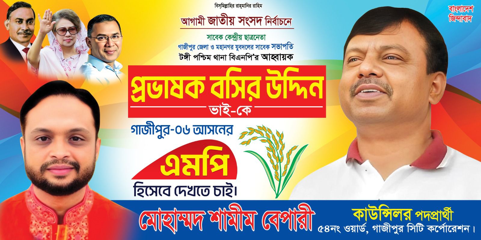 প্রভাষক বসির উদ্দিনকে এমপি হিসেবে দেখতে চাই-শামীম বেপারী