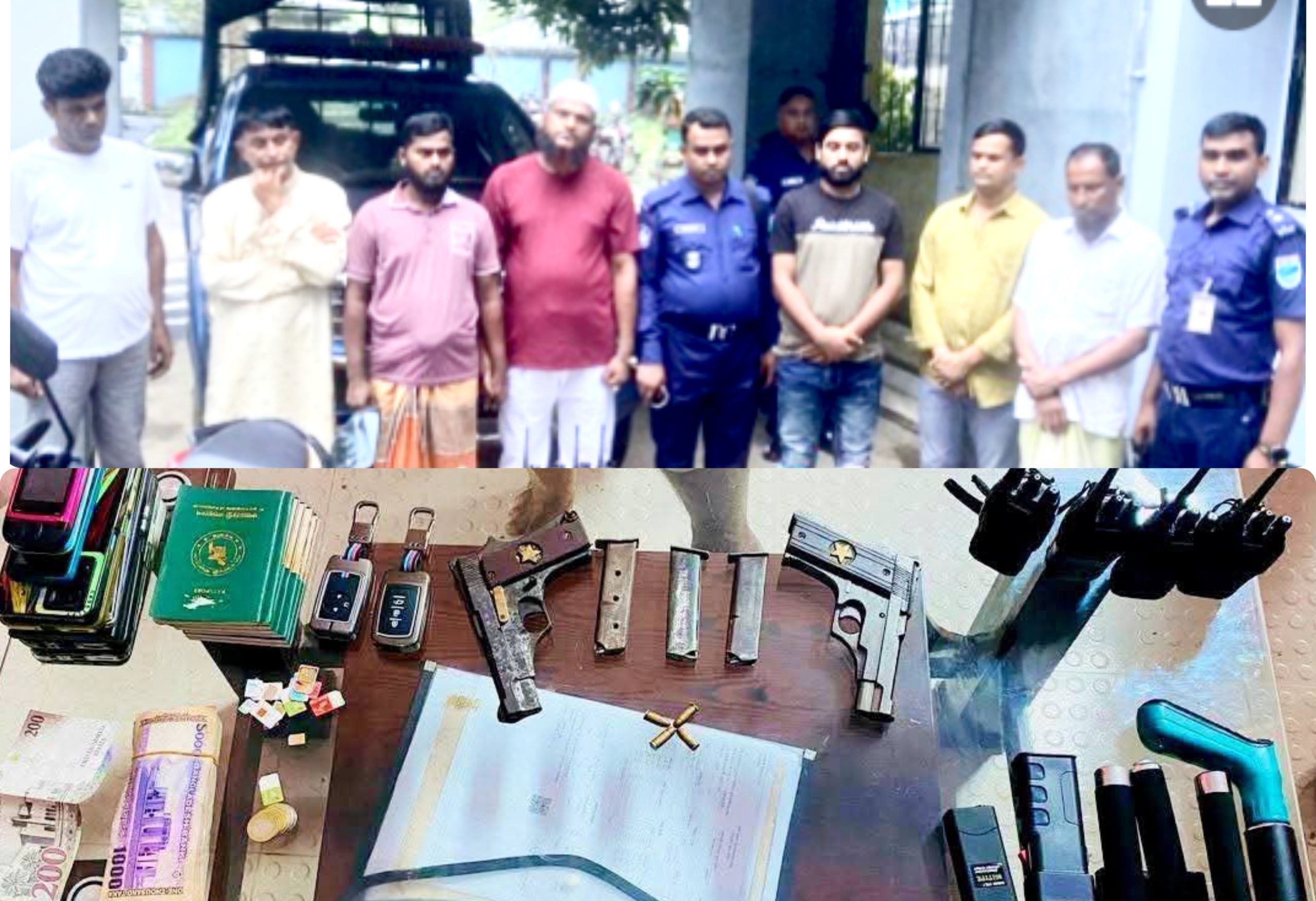 নিজস্ব প্রতিবেদক: গাজীপুরের শ্রীপুরে অস্ত্র ও সরঞ্জামসহ বরমী ইউনিয়ন ছাত্রদলের সাবেক সাধারণ সম্পাদক এনামুল হক মোল্লা (৪৮) ও তার সাত সহযোগীকে গ্রেফতার করেছে যৌথবাহিনী। বৃহস্পতিবার (৬ নভেম্বর) রাত আড়াইটা থেকে ভোর সাড়ে ৫টা পর্যন্ত বরমী ইউনিয়নের বরকুল গ্রামে অভিযান চালিয়ে তাদের আটক করা হয়।গ্রেফতারকৃতরা হলেন, শ্রীপুর উপজেলার বরমী ইউনিয়নের বরকুল গ্রামের মৃত আবদুল আহাদের ছেলে এনামুল হক মোল্লা, তার সহযোগী শওকত মীর, জাহিদ, মোস্তফা, সিদ্দিক, বুলবুল ও তোফাজ্জল। অভিযানের বিবরণে জানা যায়, গোয়েন্দা তথ্যের ভিত্তিতে যৌথবাহিনী প্রথমে এনামুল হকের নিজ বাড়িতে অভিযান চালায়। পরে তার দেওয়া তথ্যে বরমী ইউনিয়নের বিভিন্ন স্থানে অভিযান চালিয়ে তার সহযোগীদের আটক করা হয়। এ সময় তাদের কাছ থেকে দুটি পিস্তল, তিনটি ম্যাগাজিন, চার রাউন্ড গুলি, চারটি ওয়াকিটকি, দুটি ইলেকট্রিক শর্ট মেশিন, একটি হ্যামার নেল গান ও একটি চাকু উদ্ধার করা হয়। অভিযান পরিচালনাকারী শ্রীপুর থানার উপ-পরিদর্শক (এসআই) জুনায়েদ বলেন, এনামুল হক মোল্লা দীর্ঘদিন ধরে আইনশৃঙ্খলা বাহিনীর চোখ ফাঁকি দিয়ে দেশে-বিদেশে আত্মগোপনে ছিলেন। তার বিরুদ্ধে একাধিক মামলা রয়েছে। গোপন সংবাদের ভিত্তিতে অভিযান চালিয়ে তাকে এবং তার সহযোগীদের গ্রেফতার করা হয়েছে। স্থানীয় সূত্রে জানা যায়, এনামুল হক মোল্লা একসময় বরমী এলাকায় ত্রাসের রাজত্ব চালাতেন। তার নামে একাধিক মামলা থাকায় নাম পরিবর্তন করে ‘আব্দুল্লাহ আল মামুন’ নামে ২০১৭ সালে সৌদি আরবে পালিয়ে যান। ২০২৪ সালের ৫ আগস্ট তিনি দেশে ফেরেন এবং হেলিকপ্টারে করে নিজ গ্রামে আসেন। দেশে ফেরার পর থেকে তিনি ‘মক্কা মেসফালাহ সৌদি আরব বিএনপির সভাপতি’ পরিচয়ে এলাকায় রাজনৈতিক তৎপরতা শুরু করেন এবং গাজীপুর-৩ (শ্রীপুর ও সদরের অংশ) আসনে বিএনপির মনোনয়নপ্রত্যাশী হিসেবে প্রচারণা চালান। বিএনপি নির্বাহী কমিটির সহ-স্বাস্থ্য বিষয়ক সম্পাদক ও গাজীপুর-৩ আসনের সম্ভাব্য প্রার্থী অধ্যাপক ডা. এস এম রফিকুল ইসলাম বাচ্চু বলেন, এনামুল হক মোল্লা একজন চিহ্নিত সন্ত্রাসী। তার সন্ত্রাসী কর্মকাণ্ডের কারণে ২০০১ সালেই তাকে বিএনপি থেকে বহিষ্কার করা হয়। সে পরে বিদেশে পালিয়ে যায় এবং এখন আবার রাজনৈতিক পরিচয় ব্যবহার করে বিভ্রান্তি ছড়ানোর চেষ্টা করছিল। গ্রেফতারকৃতদের বৃহস্পতিবার সকাল সাড়ে ৬টার দিকে শ্রীপুর থানায় হস্তান্তর করা হয়েছে। তাদের বিরুদ্ধে অস্ত্র আইনে মামলা দায়েরের প্রস্তুতি চলছে বলে জানিয়েছে পুলিশ।