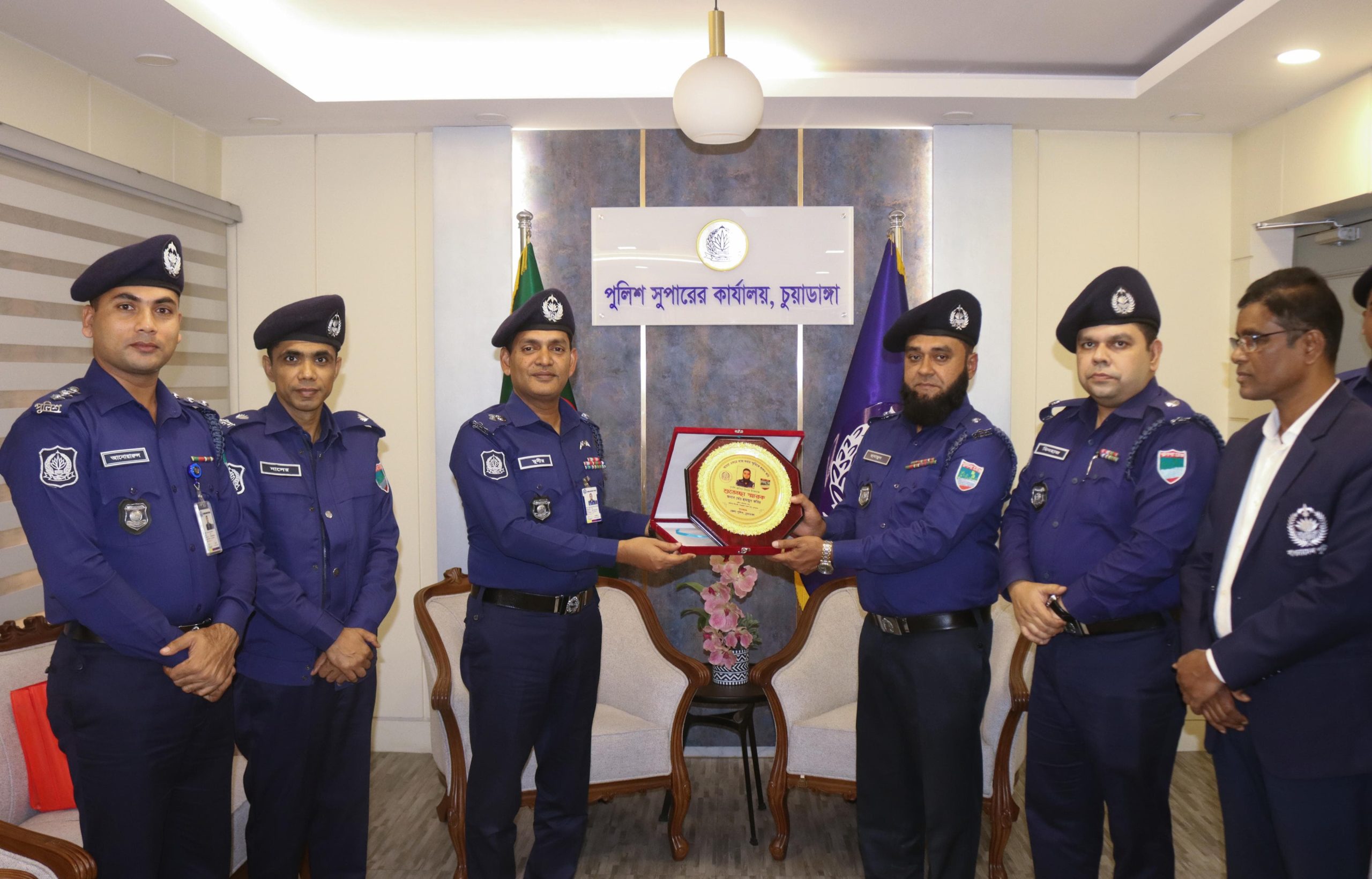 নিজস্ব প্রতিবেদক : চুয়াডাঙ্গা জেলা পুলিশে কর্মরত বদলি প্রাপ্ত কর্মকর্তাদের সম্মানে এক আন্তরিক বিদায় সংবর্ধনা অনুষ্ঠিত হয়েছে। রবিবার (০৭ ডিসেম্বর ২০২৫) বিকাল ৫টাায় চুয়াডাঙ্গা জেলা পুলিশ সুপারের কার্যালয়ে আয়োজিত এ অনুষ্ঠানে জেলা পুলিশের বিভিন্ন ইউনিটে কর্মরত কর্মকর্তারা অংশগ্রহণ করেন। বিদায়ী কর্মকর্তারা হলেন মোঃ খালেদুর রহমান (পুলিশ পরিদর্শক / অফিসার ইনচার্জ, চুয়াডাঙ্গা সদর থানা) বদলি জেলা পুলিশ, সাতক্ষীরা, মোঃ মাসুদুর রহমান, পিপিএম-সেবা (অফিসার ইনচার্জ, আলমডাঙ্গা থানা) বদলি, জেলা পুলিশ, সাতক্ষীরা মোঃ হুমায়ুন কবির (অফিসার ইনচার্জ, দামুড়হুদা মডেল থানা) বদলি জেলা পুলিশ, মেহেরপুর অনুষ্ঠানে প্রধান অতিথি হিসেবে উপস্থিত ছিলেন চুয়াডাঙ্গা জেলা পুলিশ সুপার মোহাম্মদ মনিরুল ইসলাম। তিনি বিদায়ী কর্মকর্তাদের হাতে স্মৃতি স্মারক তুলে দেন এবং তাঁদের নিষ্ঠা, পেশাদারিত্ব ও দায়িত্বশীল ভূমিকার জন্য কৃতজ্ঞতা প্রকাশ করেন। পুলিশ সুপার বলেন, এক বছরেরও বেশি সময় ধরে শান্তিপূর্ণ আইন-শৃঙ্খলা রক্ষায় তাঁদের ভূমিকা প্রশংসনীয়। জেলা পুলিশ তাঁদের কর্মকাণ্ড কৃতজ্ঞচিত্তে স্মরণ করবে। অনুষ্ঠানে আরও উপস্থিত ছিলেন মোঃ মিনহাজ-উল-ইসলাম, অতিরিক্ত পুলিশ সুপার (প্রশাসন ও অর্থ) জামাল আল নাসের, অতিরিক্ত পুলিশ সুপার (ক্রাইম অ্যান্ড অপস্) মোঃ মোস্তাফিজুর রহমান, অতিরিক্ত পুলিশ সুপার (সদর সার্কেল) মোঃ আনোয়ারুল কবীর, সহকারী পুলিশ সুপার (দামুড়হুদা সার্কেল) সহ জেলা পুলিশের বিভিন্ন পদমর্যাদার কর্মকর্তা ও ফোর্সবৃন্দ। শেষে বিদায়ী কর্মকর্তাদের উজ্জ্বল ভবিষ্যৎ কামনা করে অনুষ্ঠানের আনুষ্ঠানিক সমাপ্তি ঘোষণা করা হয়।