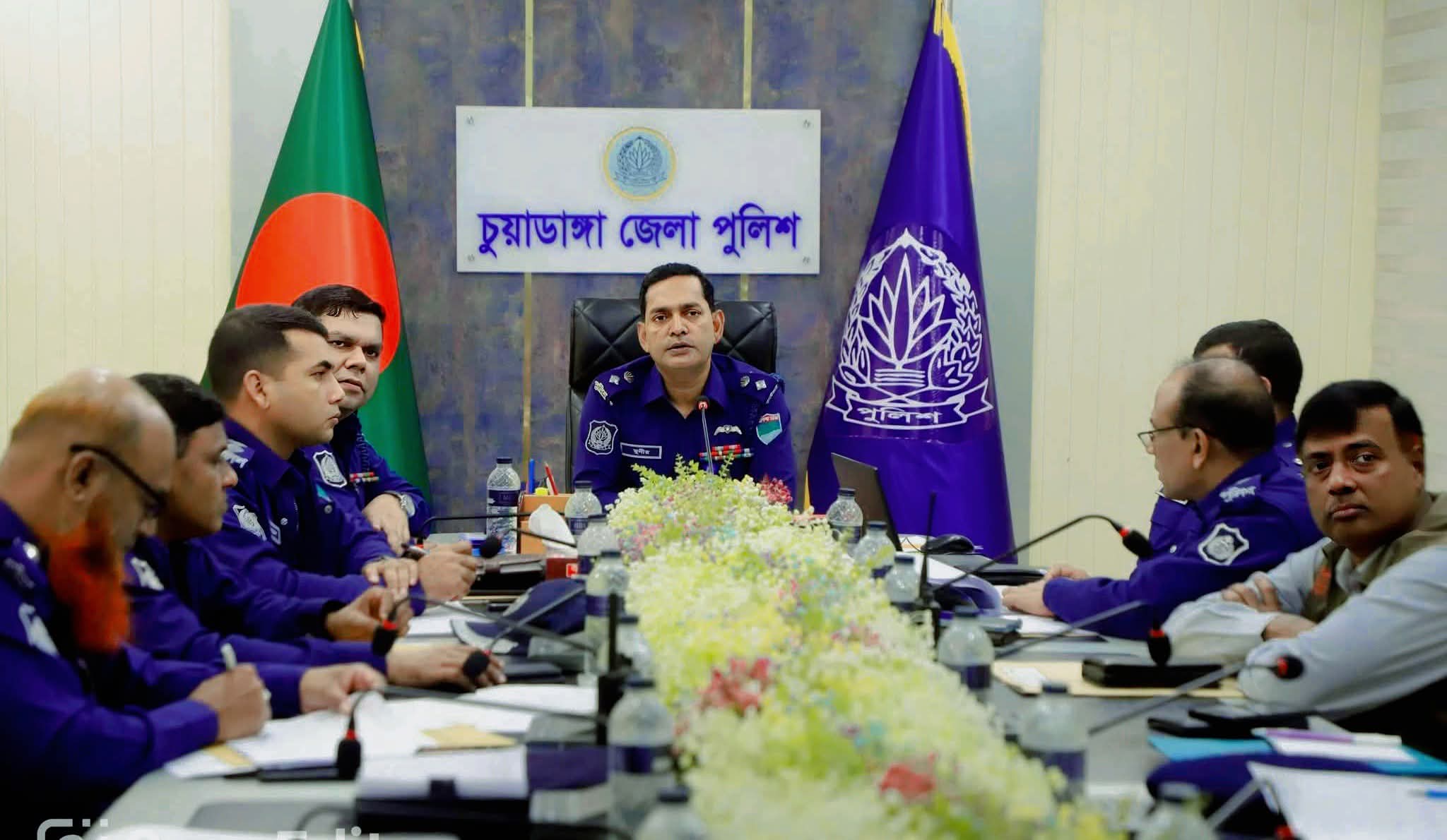 নিজস্ব প্রতিবেদক : চুয়াডাঙ্গা পুলিশ সুপারের কার্যালয়ের সম্মেলন কক্ষে জেলা পুলিশ, চুয়াডাঙ্গার আয়োজনে শনিবার (১৩ ডিসেম্বর) সকাল ১১ ঘটিকায় নভেম্বর/২৫ মাসের মাসিক অপরাধ পর্যালোচনা সভা অনুষ্ঠিত হয়েছে। সভায় সভাপতিত্ব করেন মোহাম্মদ মনিরুল ইসলাম, পুলিশ সুপার, চুয়াডাঙ্গা। অপরাধ পর্যালোচনা সভায় পুলিশ সুপার মামলা তদন্তের অগ্রগতি, অপরাধ নিয়ন্ত্রণ, ওয়ারেন্ট তামিল, গুরুত্বপূর্ণ মামলার রহস্য উদঘাটন, মাদক ও অবৈধ অস্ত্র উদ্ধার, চুরি, ডাকাতি, দস্যুতা ও ছিনতাইসহ বিভিন্ন সামাজিক অপরাধ দমনে গৃহীত কার্যক্রম পর্যালোচনা করেন। এসময় তিনি পুলিশের পেশাদারিত্ব ও দায়বদ্ধতা বৃদ্ধির ওপর বিশেষ গুরুত্বারোপ করেন। পুলিশ সুপার থানা ও ক্যাম্প এলাকায় অপ্রীতিকর ঘটনা প্রতিরোধে নিয়মিত ও কার্যকর পুলিশি টহল বৃদ্ধির নির্দেশনা প্রদান করেন। পাশাপাশি সাধারণ জনগণ যেন কোনো ধরনের হয়রানি ছাড়াই দ্রুত ও প্রত্যাশিত পুলিশি সেবা পায়, তা নিশ্চিত করার ওপর জোর দেন।তিনি আরও বলেন, প্রত্যেক ইউনিয়নে নিয়মিত বিট পুলিশিং সভা, উঠান বৈঠক এবং স্থানীয় জনপ্রতিনিধি, সুধীজন ও সর্বস্তরের মানুষের সঙ্গে আইন-শৃঙ্খলা বিষয়ক সভার মাধ্যমে অপরাধ প্রতিরোধ ও নিয়ন্ত্রণ কার্যক্রম আরও জোরদার করতে হবে। এলাকার আইন-শৃঙ্খলা পরিস্থিতি স্থিতিশীল রেখে জনবান্ধব পুলিশিং নিশ্চিত করার জন্য তিনি সংশ্লিষ্ট সকলকে প্রয়োজনীয় নির্দেশনা প্রদান করেন। সভা শেষে পুলিশ সুপার দেশপ্রেম, পেশাদারিত্ব, নিষ্ঠা ও সততার সাথে নিজ নিজ দায়িত্ব পালনের মাধ্যমে সাধারণ জনগণের আস্থা অর্জনের আহ্বান জানান। উক্ত অপরাধ পর্যালোচনা সভায় চুয়াডাঙ্গা জেলা পুলিশের ঊর্ধ্বতন কর্মকর্তাগণ উপস্থিত ছিলেন।