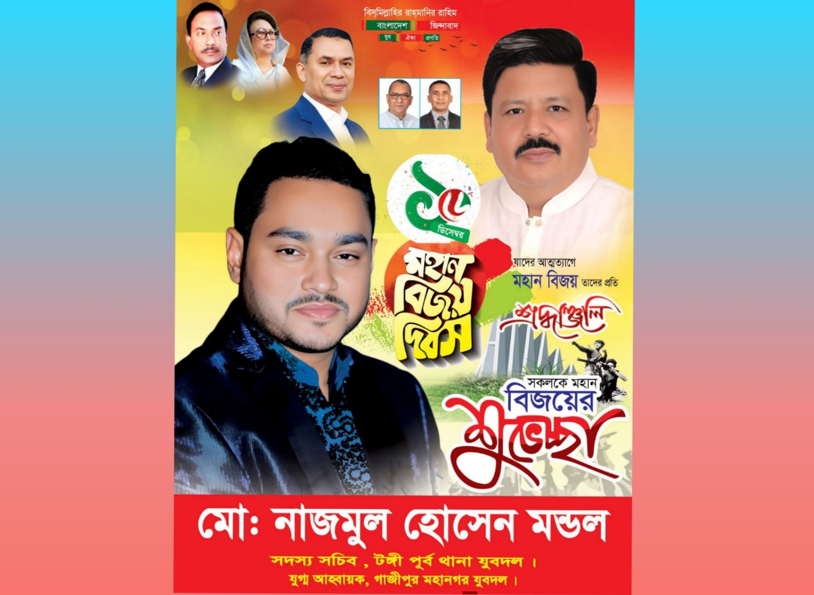 নিজস্ব প্রতিবেদক : ১৬ই ডিসেম্বর মহান বিজয় দিবস উপলক্ষে টঙ্গী পূর্ব থানা যুবদলের সদস্য সচিব নাজমুল হোসেন মন্ডল দেশবাসীকে আন্তরিক শুভেচ্ছা ও অভিনন্দন জানিয়েছেন।এক শুভেচ্ছা বার্তায় তিনি গভীর শ্রদ্ধার সঙ্গে স্মরণ করেন ১৯৭১ সালের মহান মুক্তিযুদ্ধে আত্মত্যাগকারী বীর শহীদদের, যাদের অসীম ত্যাগের বিনিময়ে বাংলাদেশ অর্জন করেছে চূড়ান্ত বিজয় ও স্বাধীনতা। তিনি বলেন, মহান বিজয় দিবস বাঙালি জাতির ইতিহাসে এক গৌরবোজ্জ্বল অধ্যায়, যা আমাদের দেশপ্রেম, ঐক্য ও গণতান্ত্রিক চেতনায় উদ্বুদ্ধ করে। তিনি আরও বলেন, মহান মুক্তিযুদ্ধের চেতনায় অনুপ্রাণিত হয়ে একটি ন্যায়ভিত্তিক, গণতান্ত্রিক ও মানবিক বাংলাদেশ গঠনে তরুণ সমাজসহ সকল শ্রেণি-পেশার মানুষকে দায়িত্বশীল ভূমিকা রাখতে হবে। শেষে তিনি মহান আল্লাহর কাছে দেশের শান্তি, অগ্রগতি ও জনগণের সার্বিক কল্যাণ কামনা করেন এবং মহান বিজয় দিবস উপলক্ষে সবাইকে আবারও শুভেচ্ছা জানান।