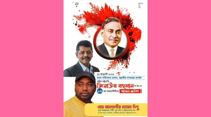 নিজস্ব প্রতিবেদক : বাংলাদেশের স্বাধীনতার ঘোষক, বহুদলীয় গণতন্ত্রের প্রবর্তক ও শহিদ রাষ্ট্রপতি জিয়াউর রহমানের ৯০তম জন্মদিন উপলক্ষে গভীর শ্রদ্ধা ও ভালোবাসা জানিয়েছেন কেন্দ্রীয় স্বেচ্ছাসেবক দলের সহ-সভাপতি আরিফ হোসেন হাওলাদার। এক বিবৃতিতে তিনি বলেন, শহিদ রাষ্ট্রপতি জিয়াউর রহমান ছিলেন একজন আপসহীন দেশপ্রেমিক, সাহসী মুক্তিযোদ্ধা ও দূরদর্শী রাষ্ট্রনায়ক। তাঁর নেতৃত্ব, সততা ও জাতীয়তাবাদী চিন্তাধারা আজও বাংলাদেশের গণতন্ত্রকামী মানুষের জন্য অনুপ্রেরণার প্রধান উৎস। আরিফ হোসেন হাওলাদার আরও বলেন, শহিদ জিয়ার আদর্শ বাস্তবায়নের মধ্য দিয়েই একটি গণতান্ত্রিক, স্বাধীন ও আত্মমর্যাদাশীল বাংলাদেশ গড়ে তোলা সম্ভব। বর্তমান প্রজন্মকে তাঁর জীবনাদর্শ থেকে শিক্ষা নিয়ে দেশের স্বার্থে ঐক্যবদ্ধভাবে কাজ করতে হবে। তিনি শহিদ রাষ্ট্রপতি জিয়াউর রহমানের রুহের মাগফিরাত কামনা করেন এবং তাঁর স্মৃতির প্রতি গভীর শ্রদ্ধা নিবেদন করেন।