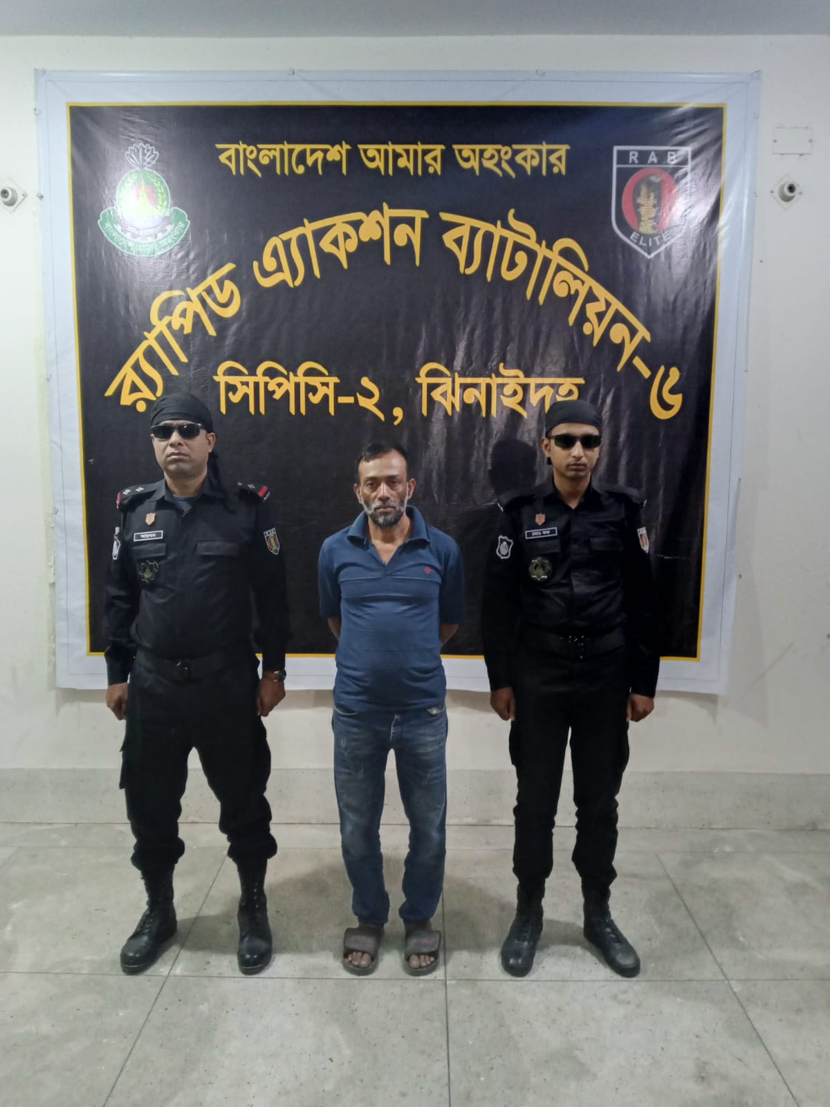 নিজস্ব প্রতিবেদক : ঝিনাইদহের চাঞ্চল্যকর বরুন হত্যা মামলার পলাতক আসামীকে গ্রেফতার করেছে র্যাব-৬,শুক্রবার ২৩ ফেব্রুয়ারি ঝিনাইদহ জেলার সদর থানাধীন হামদহ পুলিশ লাইন সংলগ্ন এলাকা থেকে তাকে আটক করা হয়। সূত্রে জানাগেছে, গত ৯ জানুয়ারী ২০২৪ ইং মঙ্গলবার ভিকটিম বরুণ ঘোষ সন্ধ্যায় বাড়ি থেকে বের হয়ে ঝিনাইদহ জেলার সদর থানাধীন ঘোষপাড়া ব্রিজ মোড় এলাকার একটি দোকানে বসে ছিল। এ সময় ৫/৭ জন দুর্বৃত্ত তাকে মানুষের সামনে এলোপাতাড়ি কুপিয়ে গুরুতর আহত করে ফেলে রেখে যায়। স্থানীয় লোকজন তাকে উদ্ধার করে ঝিনাইদহ সদর হাসপাতালে নিয়ে গেলে কর্তব্যরত চিকিৎসক তাকে মৃত ঘোষণা করেন। নিহত বরুনের ভাই অরুণ কুমার ঘোষ জানান, দীর্ঘদিন বরুন ঘোষ আওয়ামী লীগের রাজনীতির সঙ্গে জড়িত ছিলেন। সদ্য সমাপ্ত জাতীয় সংসদ নির্বাচনে তিনি নৌকা প্রতীকের প্রার্থীর পক্ষে কাজ করেন। এ বিষয়ে ভিকটিম এর স্ত্রী বাদী হয়ে গত ৯ জানুয়ারি ২০২৪ তারিখে ৯ জনের নাম উল্লেখ করে ও অজ্ঞাত নামা আরও নয় থেকে দশ জনকে আসামি করে ঝিনাইদহ জেলার সদর থানায় একটি হত্যা মামলা দায়ের করেন। ঘটনার বিষয়ে র্যাব-৬, ঝিনাইদহ ক্যাম্পের একটি চৌকস আভিযানিক দল ছায়া তদন্ত শুরু করে এবং উক্ত হত্যা মামলার প্রধান আসামীকে গ্রেফতারে র্যাবের গোয়েন্দা তৎপরতা অব্যাহত রাখে। এরই ধারাবাহিকতায় অদ্য ২৩ ফেব্রুয়ারি ২০২৪ তারিখ র্যাব-৬, ঝিনাইদহ একটি আভিযানিক দল গোপন তথ্যের মাধ্যমে জানতে পারে যে, উক্ত হত্যা মামলার পলাতক আসামী- মোঃ রাশেদুল ইসলাম ওরফে রাশেদ ঝিনাইদহ জেলার সদর থানাধীন হামদহ পুলিশ লাইন সংলগ্ন এলাকায় অবস্থান করছে। প্রাপ্ত সংবাদের ভিত্তিতে আইনগত ব্যবস্থা গ্রহণের উদ্দেশ্যে র্যব-৬ এর আভিযানিক দলটি ঝিনাইদহ জেলার সদর থানাধীন হামদহ পুলিশ লাইন সংলগ্ন এলাকায় একটি বিশেষ অভিযান পরিচালনা করে উক্ত হত্যা মামলার প্রধান পলাতক আসামী ঝিনাইদহ সদর উপজেলার রাশেদুল ইসলাম ওরফে রাশেদ কে (৪৭) গ্রেফতার করে। গ্রেফতারকৃত আসামীকে প্রাথমিক জিজ্ঞাসাবাদে উক্ত হত্যাকান্ডের সাথে সম্পৃক্ততার কথা স্বীকার করে। গ্রেফতারকৃত আসামীদেরকে ঝিনাইদহ জেলার ঝিনাইদহ সদর থানায় হস্তান্তর করা হয়েছে।